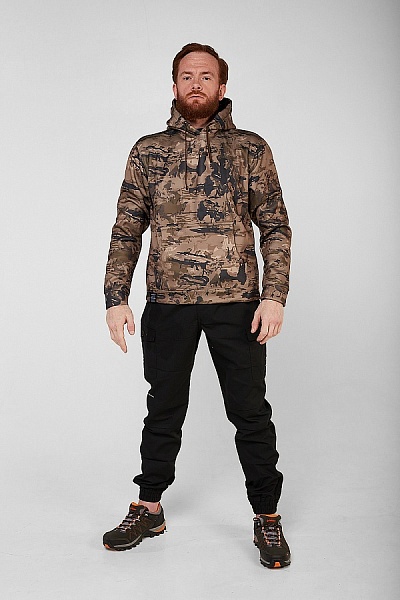 Джемпер Remington Hunting Brave EMР — универсальное решение для активного отдыха и городского использования в прохладное время года. Изделие выполнено из плотного полиэстера, устойчивого к продуванию, с внутренним слоем из микрофлиса, который удерживает тепло и обеспечивает комфорт. Модель может использоваться как самостоятельный верхний слой или как утепляющий поддев. Капюшон с кулиской не ограничивает обзор и защищает от ветра. Карман-кенгуру удобен как для рук, так и для хранения нужных мелочей.Преимущества:Удобство: свободный крой, мягкий микрофлис внутри, капюшон с кулиской, комфорт при движении.Функциональность: карман-кенгуру, защита от ветра, можно использовать как второй слой или как самостоятельную одежду.Ткань: прочный полиэстер, устойчивый к продуванию, не деформируется.Цвет: камуфляж в коричневых тонах, подходит для охоты, рыбалки и туризма, снижает заметность в природной среде.Температурный режим: от +5 до +15 °C.