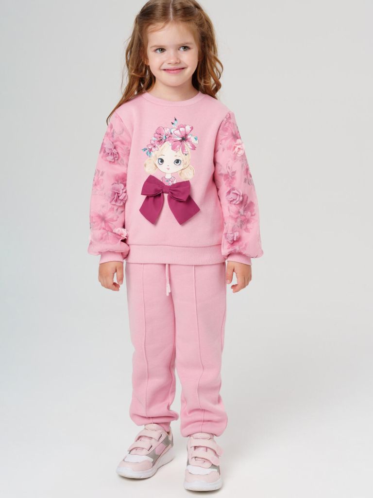 Розовая детская толстовка с принтом и 3D-цветами для девочки — тёплая и стильная вещь в школу, садик и на каждый день от PlayToday.