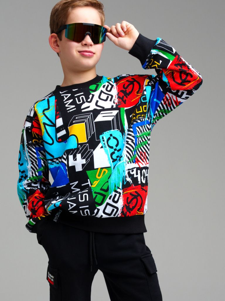 Свитшот из french terry для мальчика. Посадка comfort fit – свободный крой. Манжеты и нижняя кромка в эластичный рубчик.