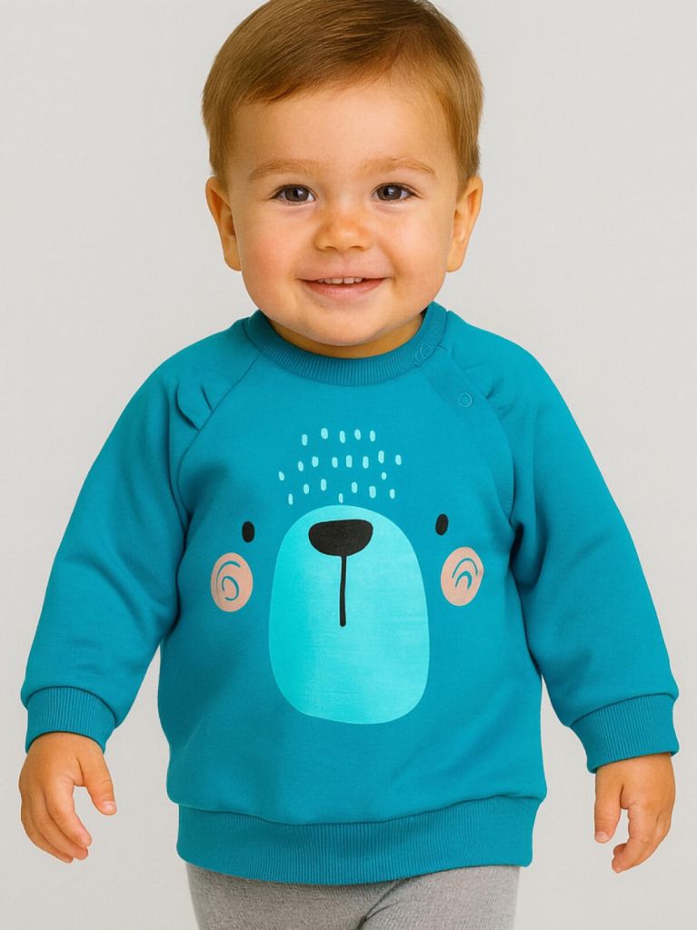 Этот детский свитшот из футера станет любимой вещью в гардеробе малыша. Материал с начёсом отлично держит тепло, сохраняя комфорт даже в прохладные дни.