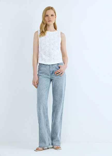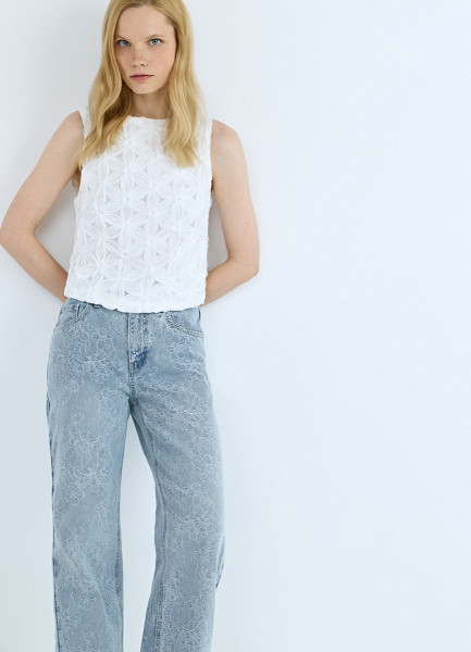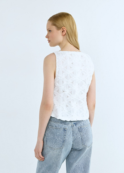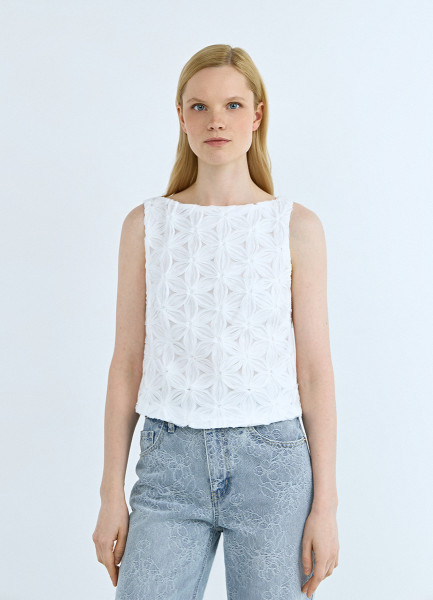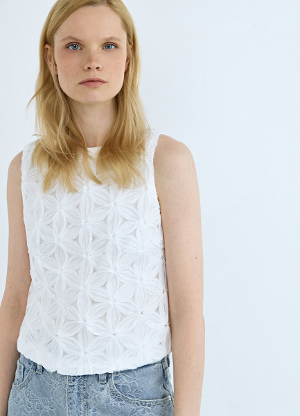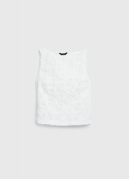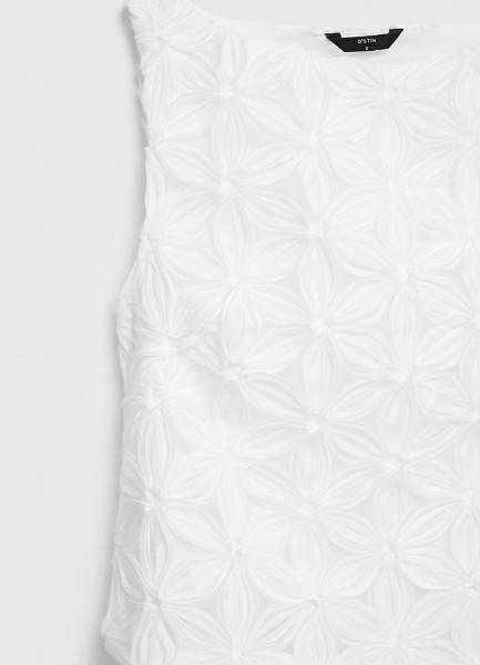 Топ-сетка с цветочным декором, Белый