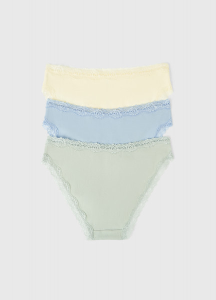 Классические трусы с кружевом, 3 шт., Желтый