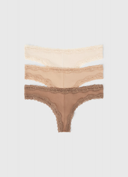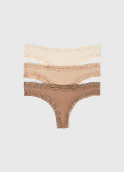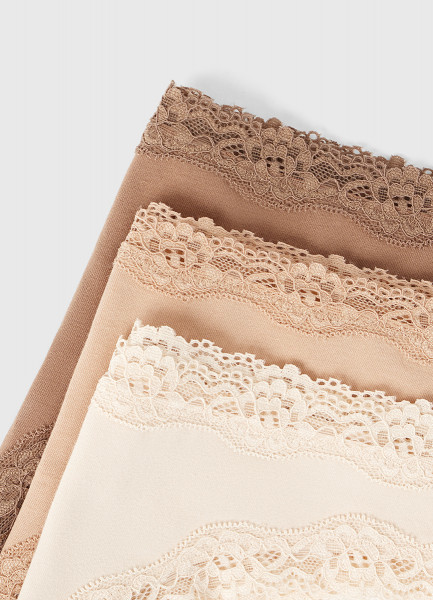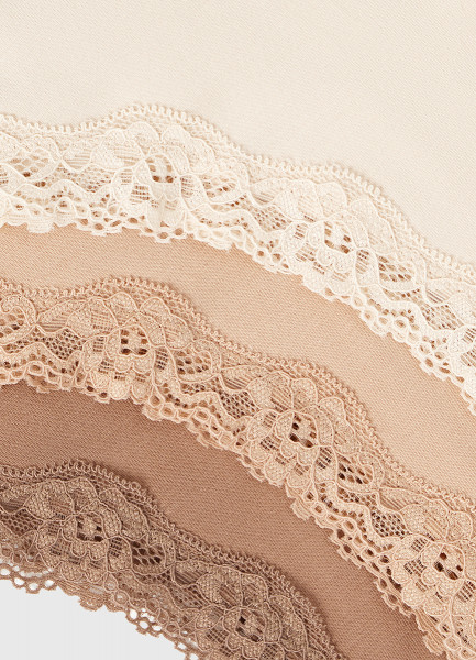 Трусы-бразилиана с кружевом, 3 шт., Бежевый