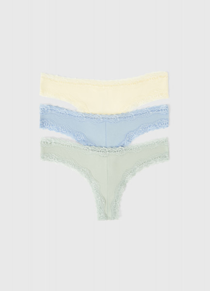 Трусы-бразилиана с кружевом, 3 шт., Желтый