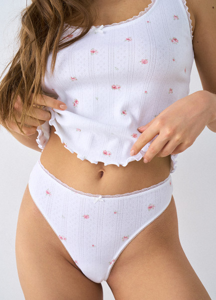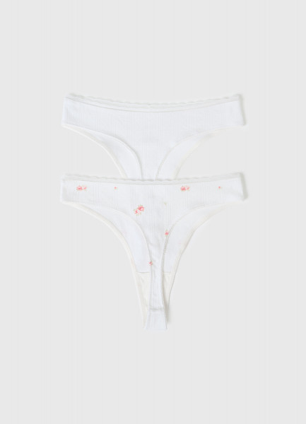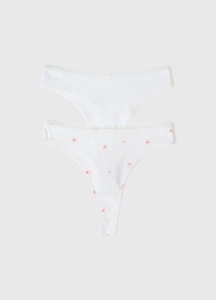 Трусы-танга из трикотажа пуантель с принтом, 2 шт., Белый