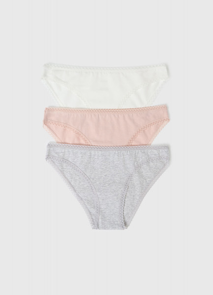 Классические брифы с кружевом, 3 шт., Голубой