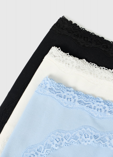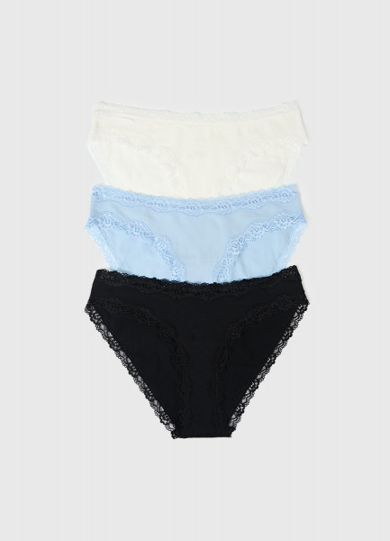 Классические брифы с кружевом, 3 шт., Голубой