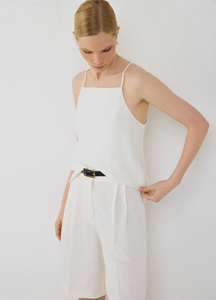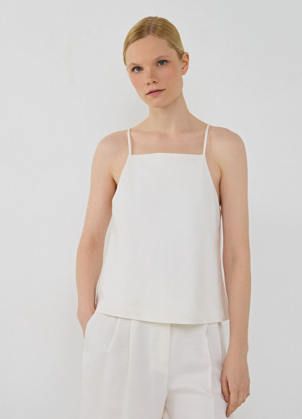 Льняной топ на бретелях, Белый