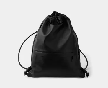 Рюкзак из натуральной кожи. Затягивается на кулиску с помощью кожаной шлёвки на круглых ручках рюкзака. На переднем полтне располагается карман на молнии. Внутри на задней стенке два накладных кармана.Вмещает формат: А4.Ручки изделия могут быть отрегулированы с помощью узлов. Длина ручек при затянутой кулисе - 900 мм, диаметр ручки - 8 мм. Внешний размер: 390х020х465. Вес изделия: 570 гр.Цвет фурнитуры: никель. Упаковка: мешок из снапбонда.