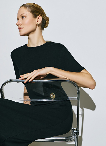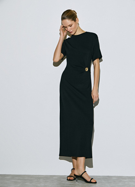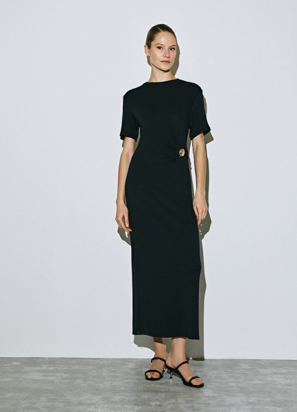 Трикотажное платье со сборками, Черный