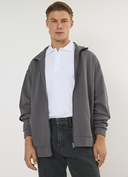 Вязаный джемпер-поло с длинным рукавом, Серый