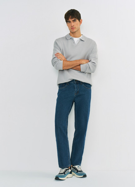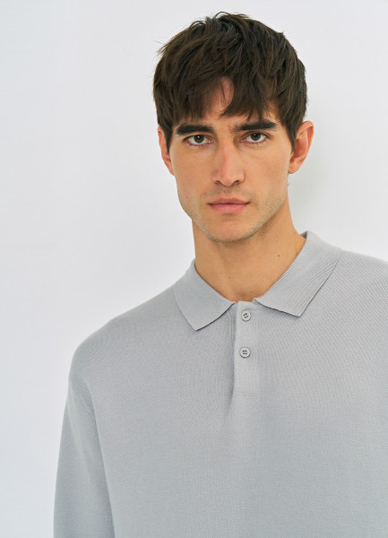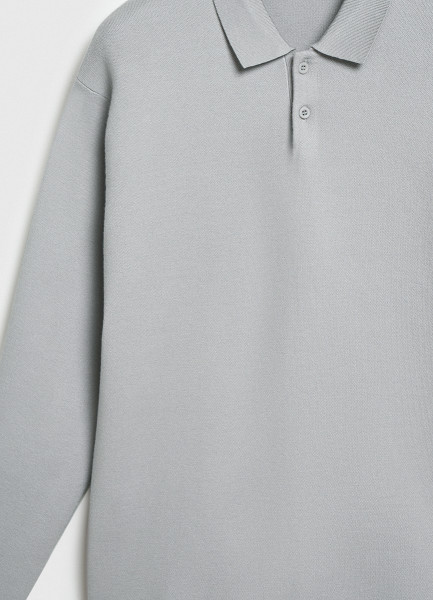 Вязаный джемпер-поло с длинным рукавом, Серый