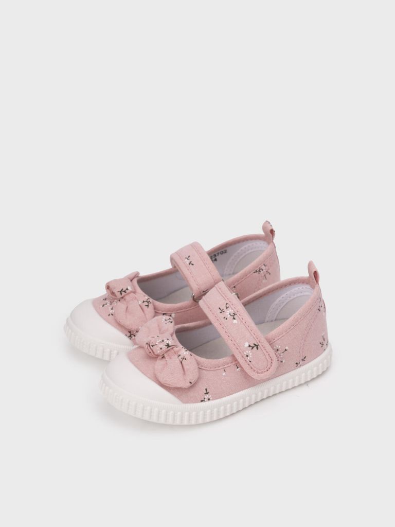 Туфли детские для девочки. Текстильные туфли с чересподъемным ремнем. Возвратный ремень позволяют ребенку обуваться самостоятельно. В обуви используется текстильная подкладка c 100% содержанием хлопка, которая обладает высокой гигроскопичностью. Съемная стелька выполнена из натуральной свиной кожи и имеет анатомический элемент для поддержания свода стопы. Облегченная подошва из ПВХ гибкая, не скользит и устойчива к истиранию.