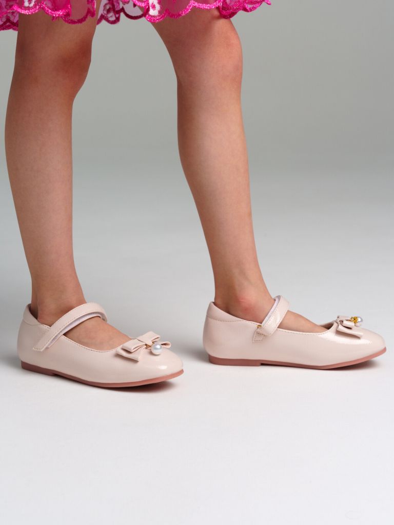 Нарядные туфли на невысоком каблучке украшены бантиком с искусственной жемчужиной. Подкладка выполнена из натуральной кожи. Стелька выполнена из натуральной кожи и имеет анатомический элемент для поддержания свода стопы. Удобная колодка. Подошва из терморезины очень гибкая. Для удобства обувания предусмотрена возвратный ремешок с липучкой. В пяточной части для комфорта предусмотрен мягкий кант.