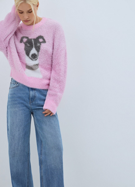 Пушистый джемпер с принтом собаки, Розовый