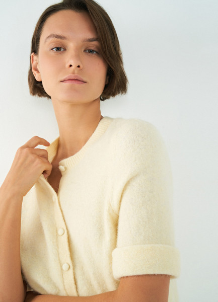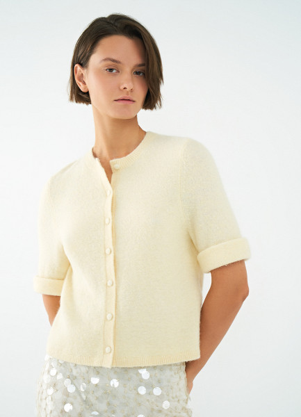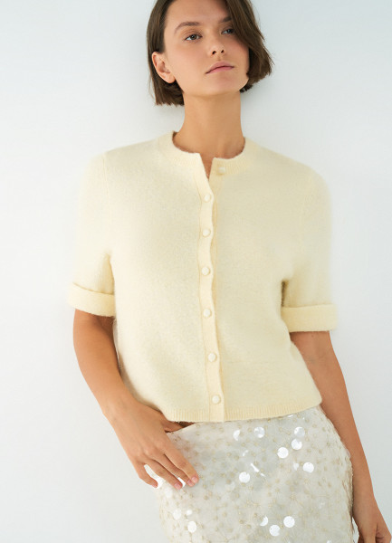 Укороченный кардиган с содержанием шерсти, Желтый