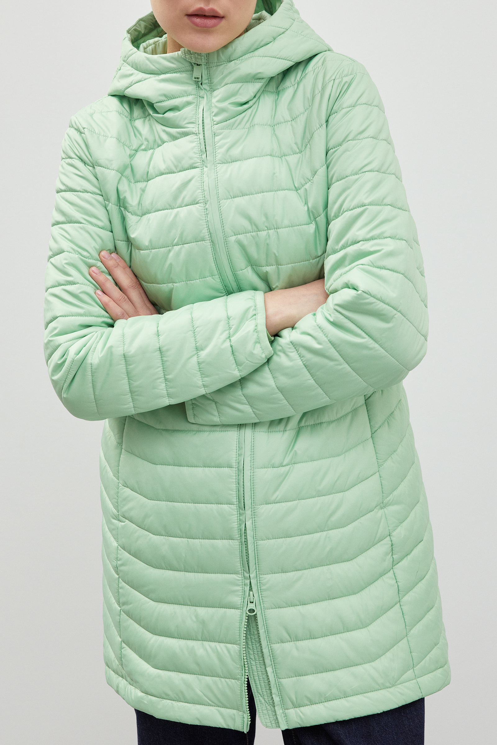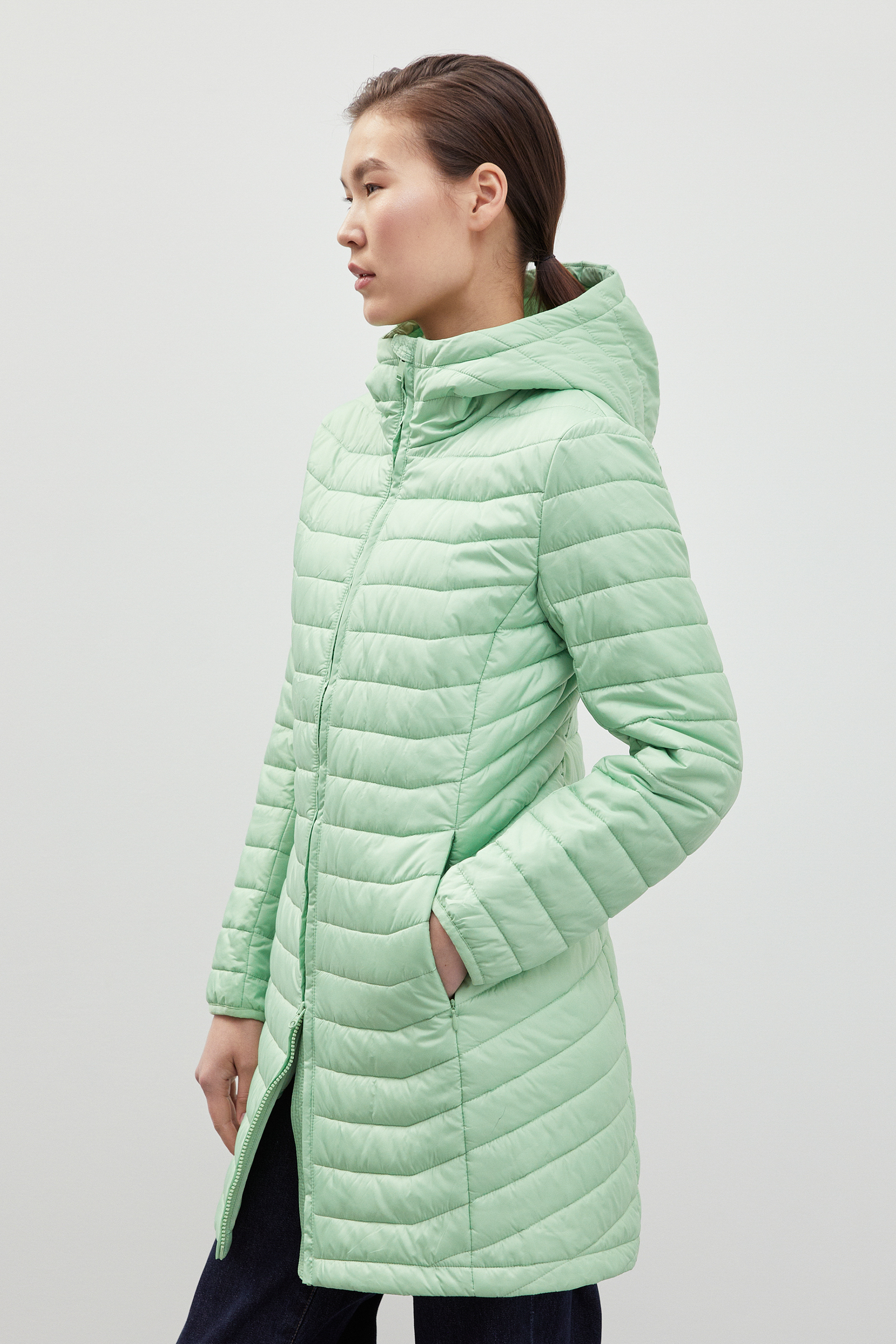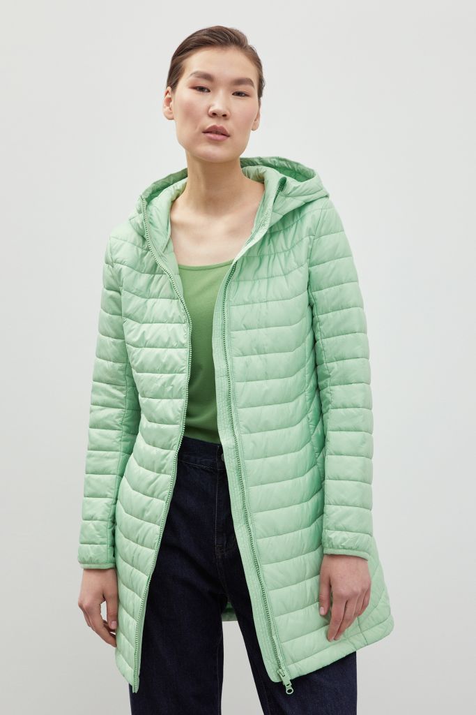Стеганое утепленное пальто с капюшоном