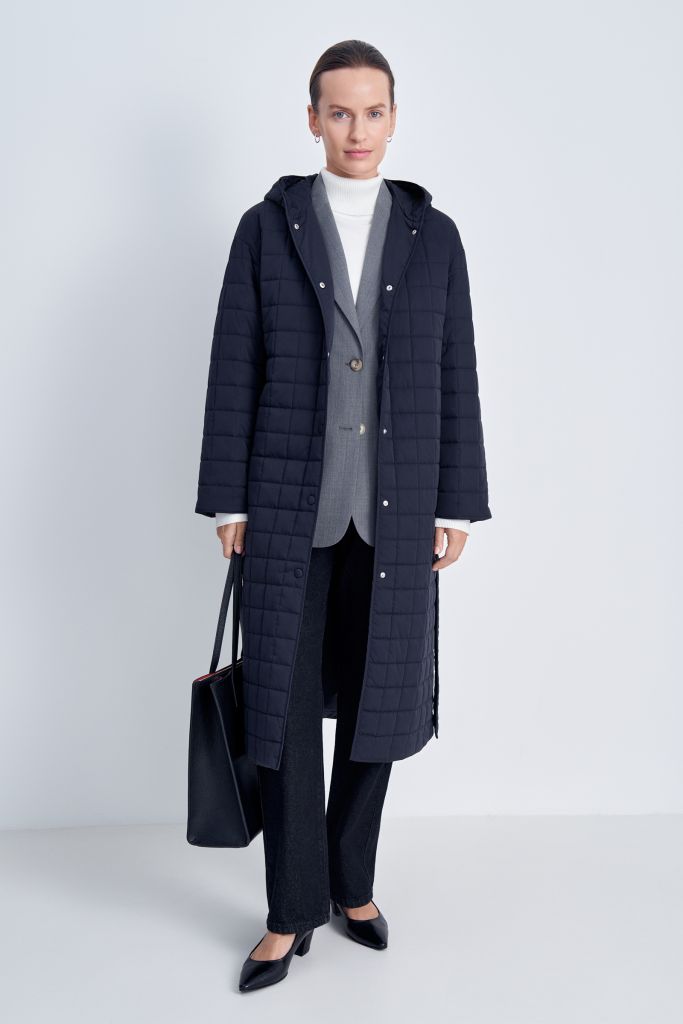 Утепленное стеганое пальто с капюшоном