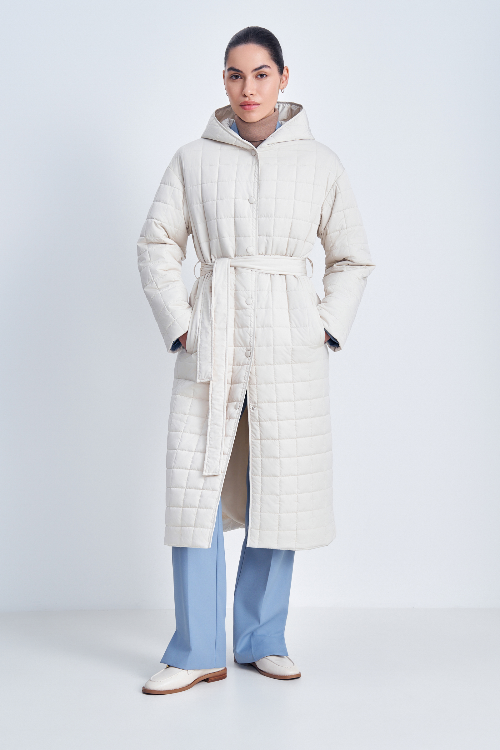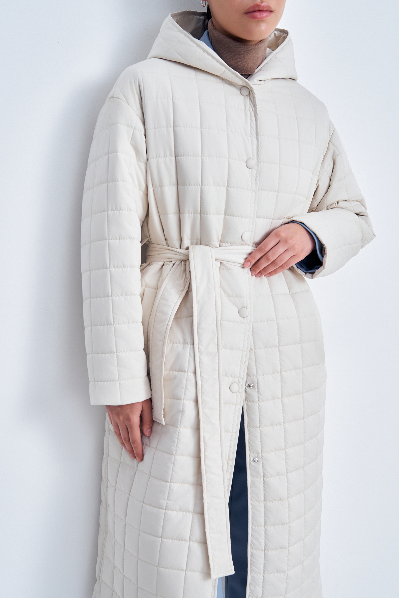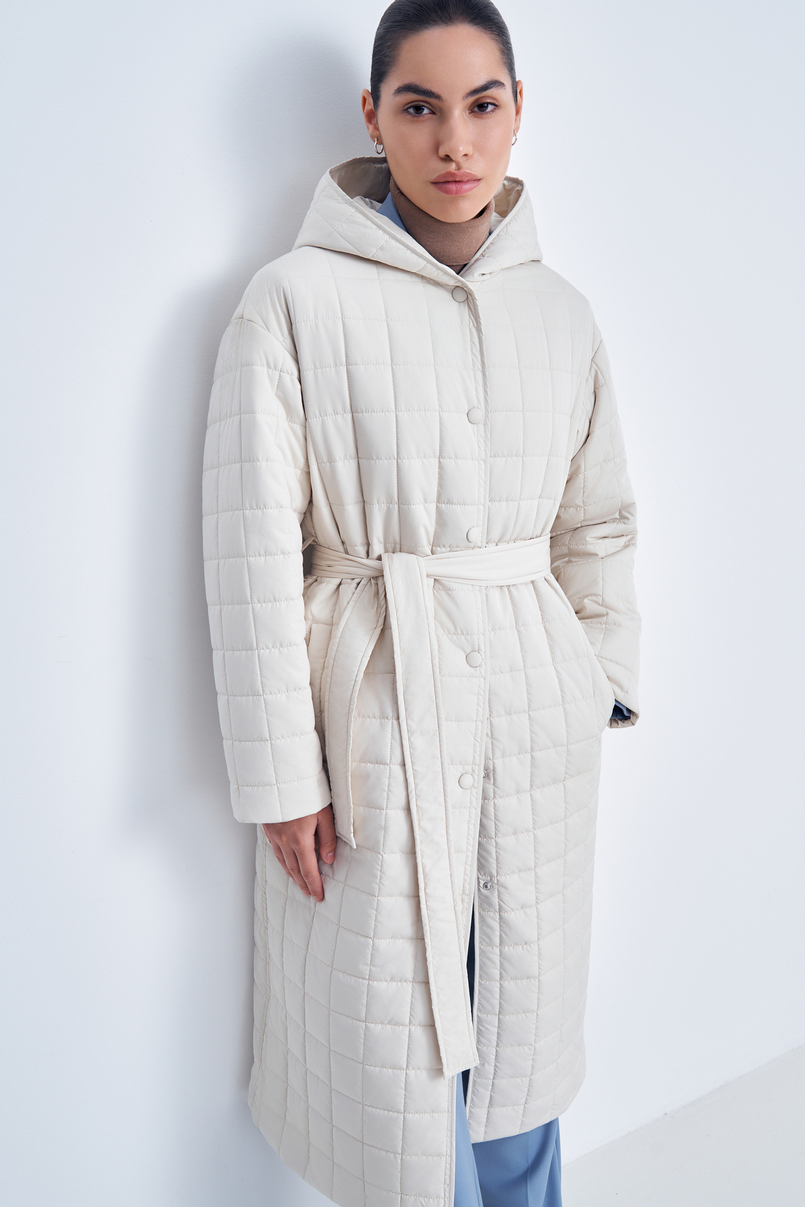 Утепленное пальто с поясом