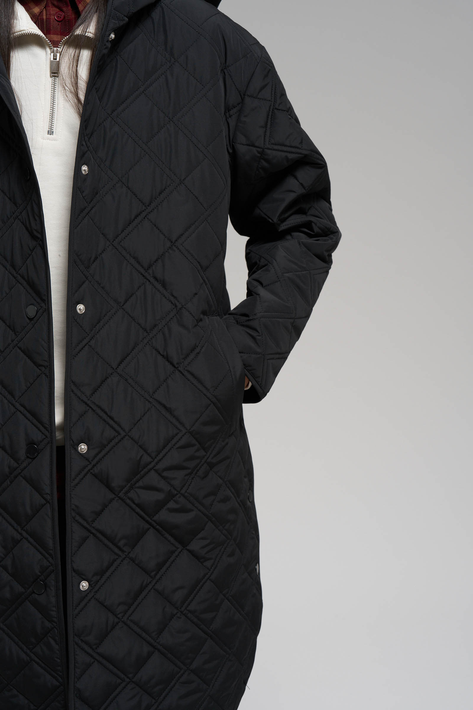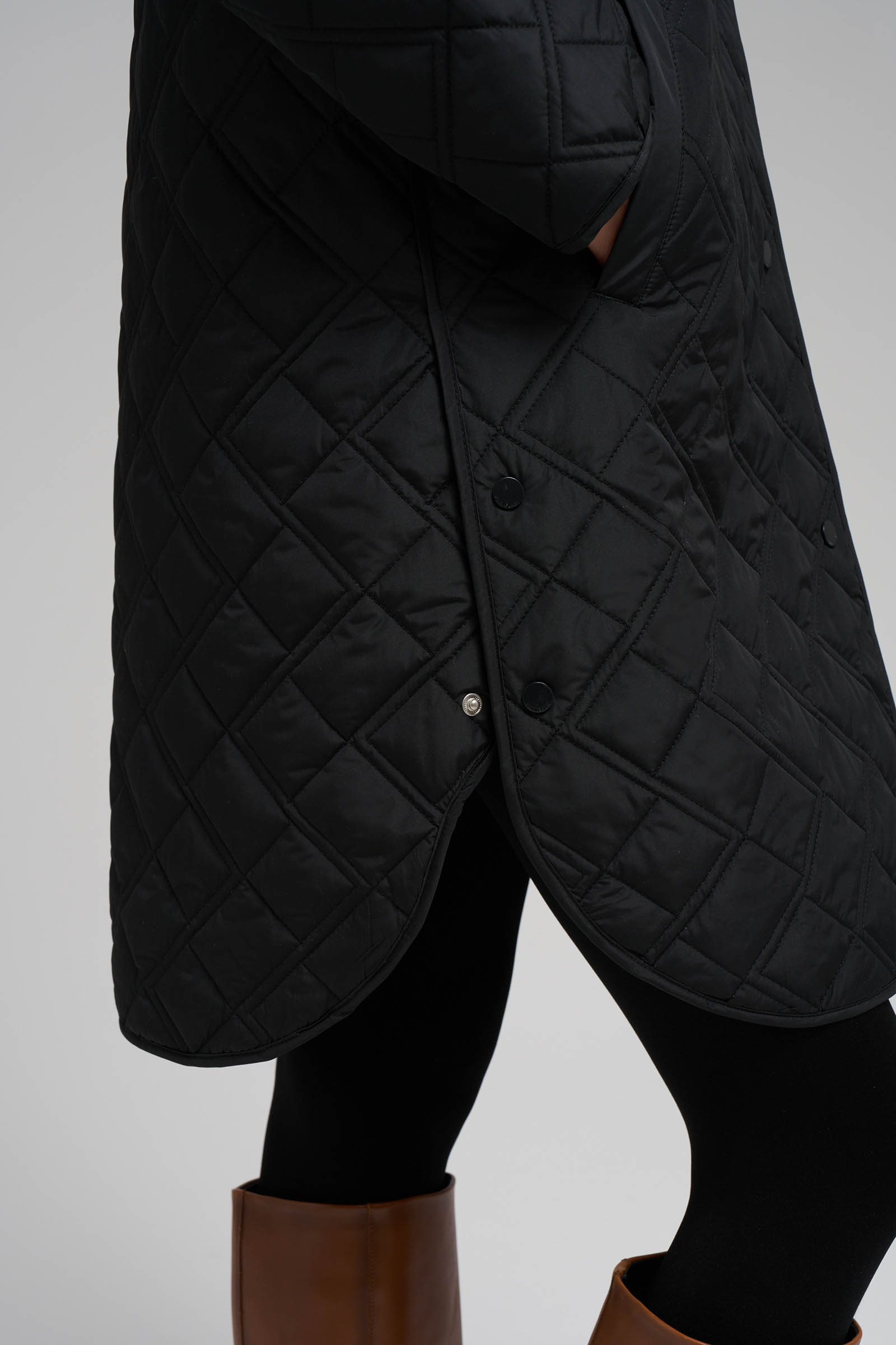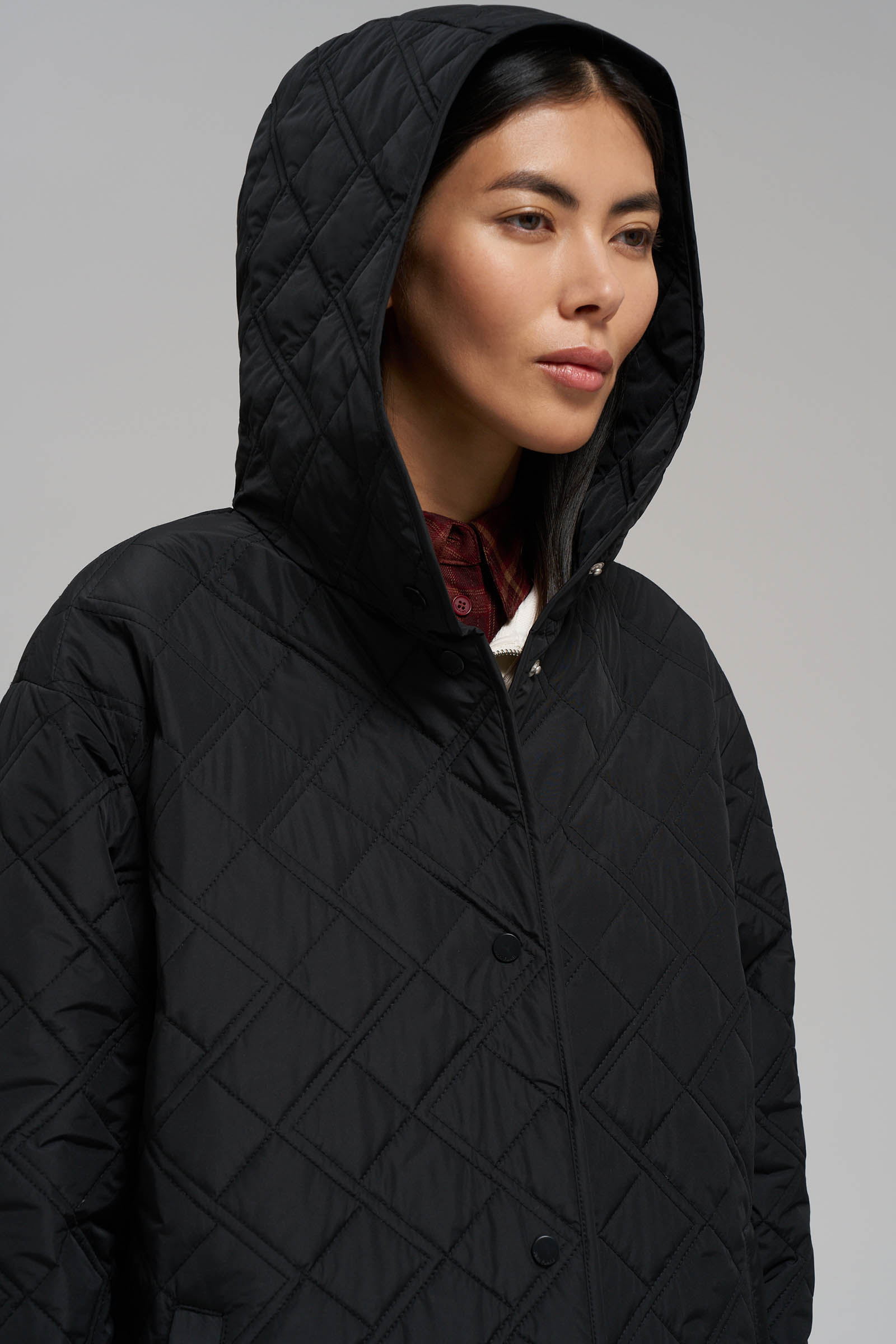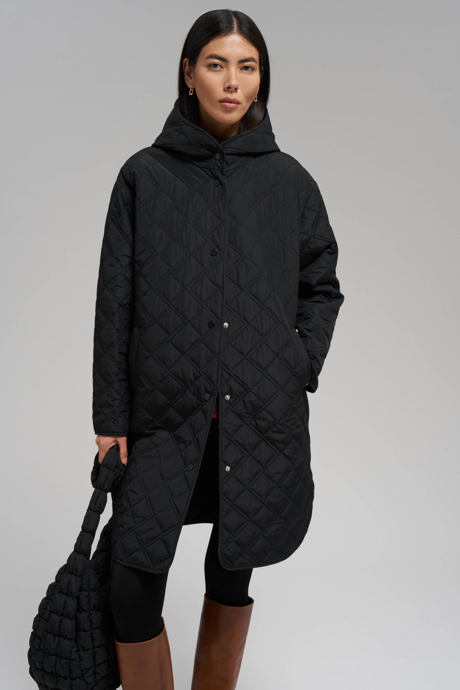 Утепленное стеганое пальто с капюшоном