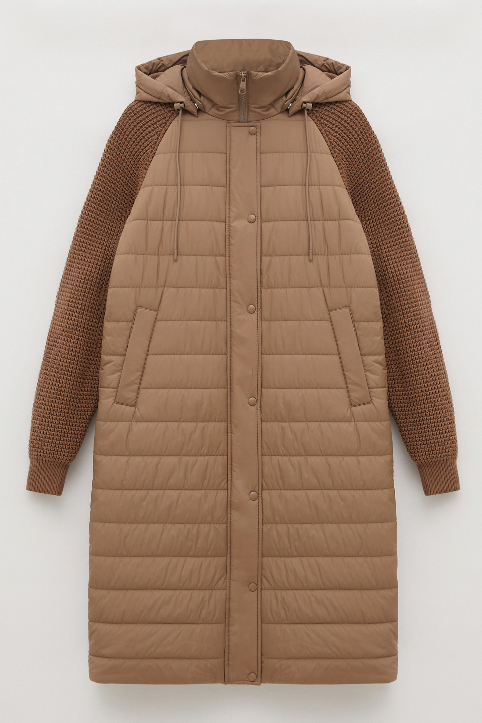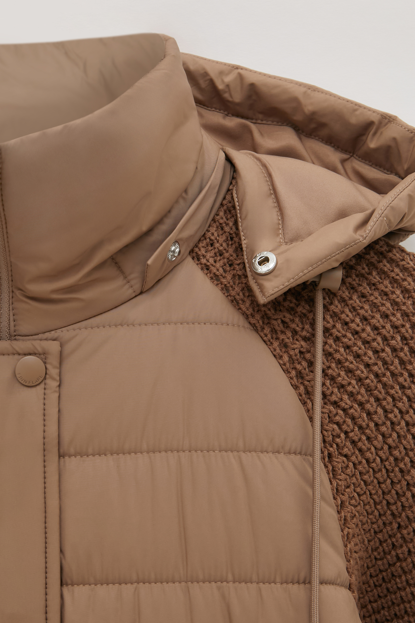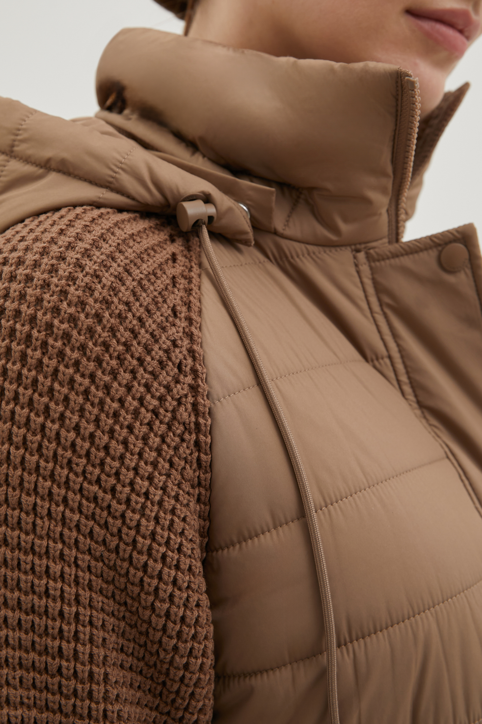 Утепленное полупальто с вязаными рукавами