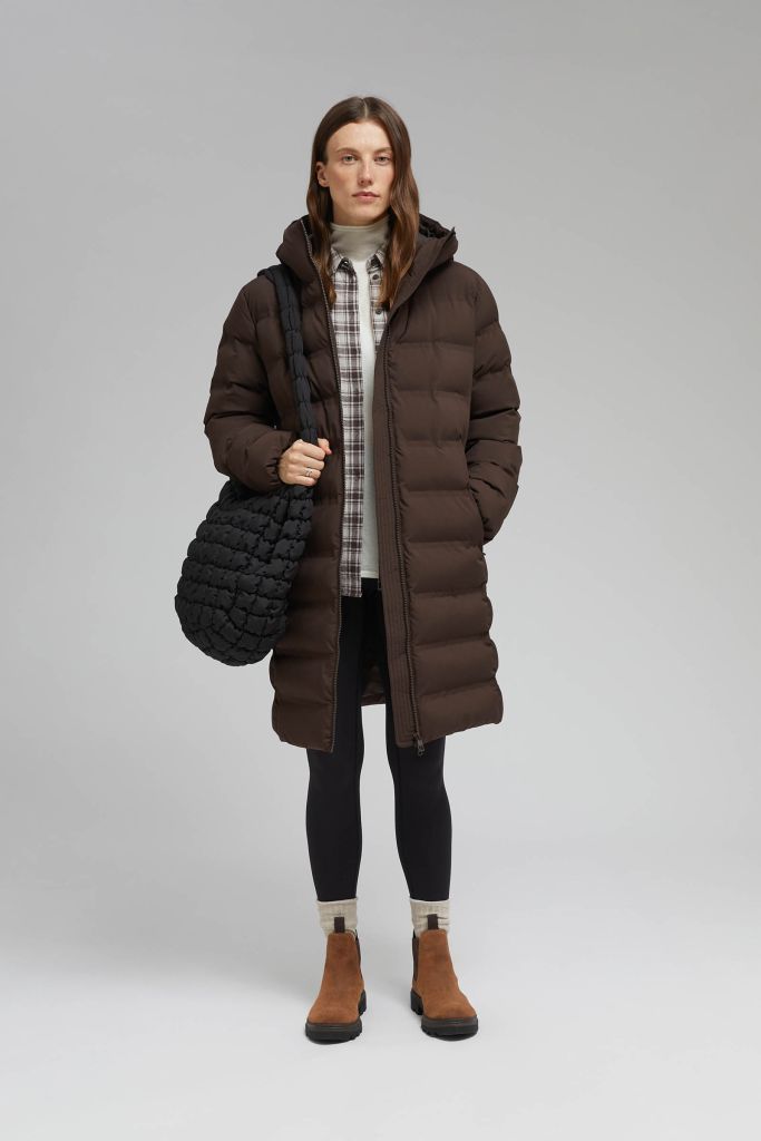 Утепленное стеганое пальто с капюшоном