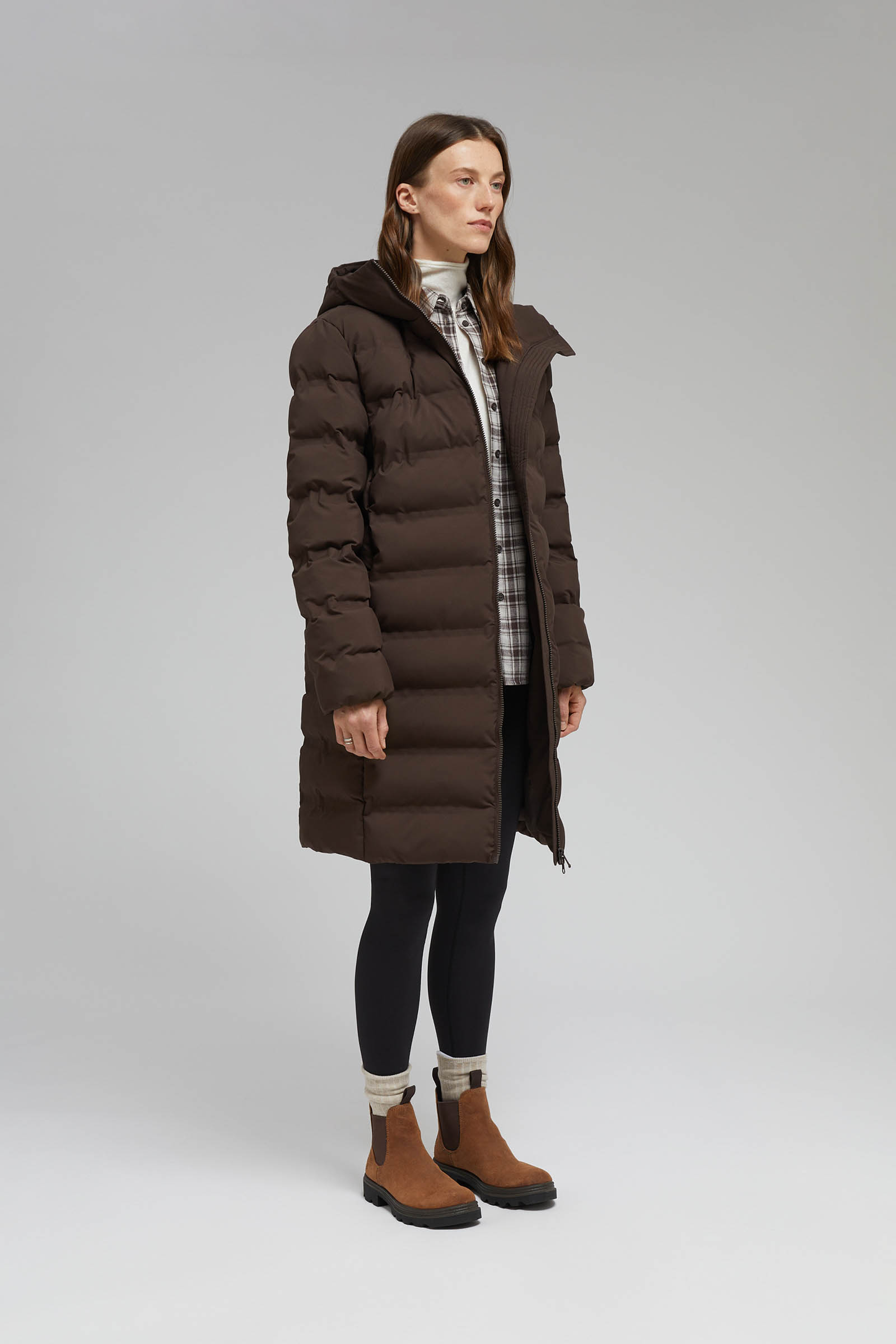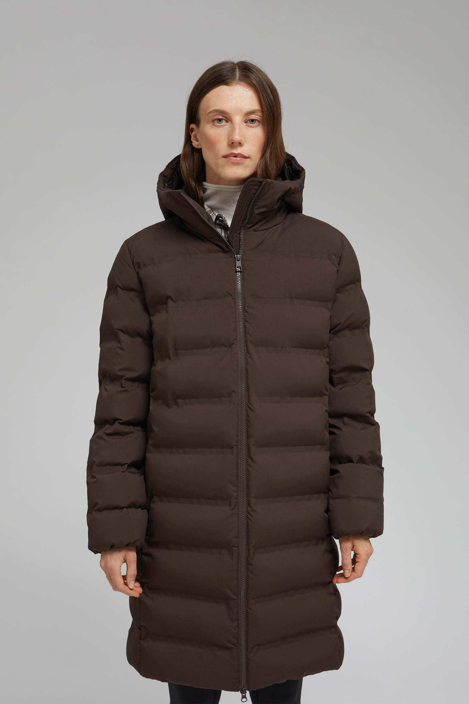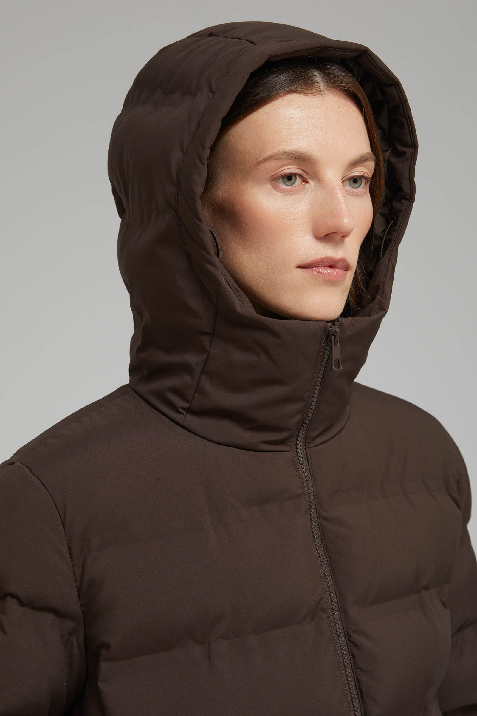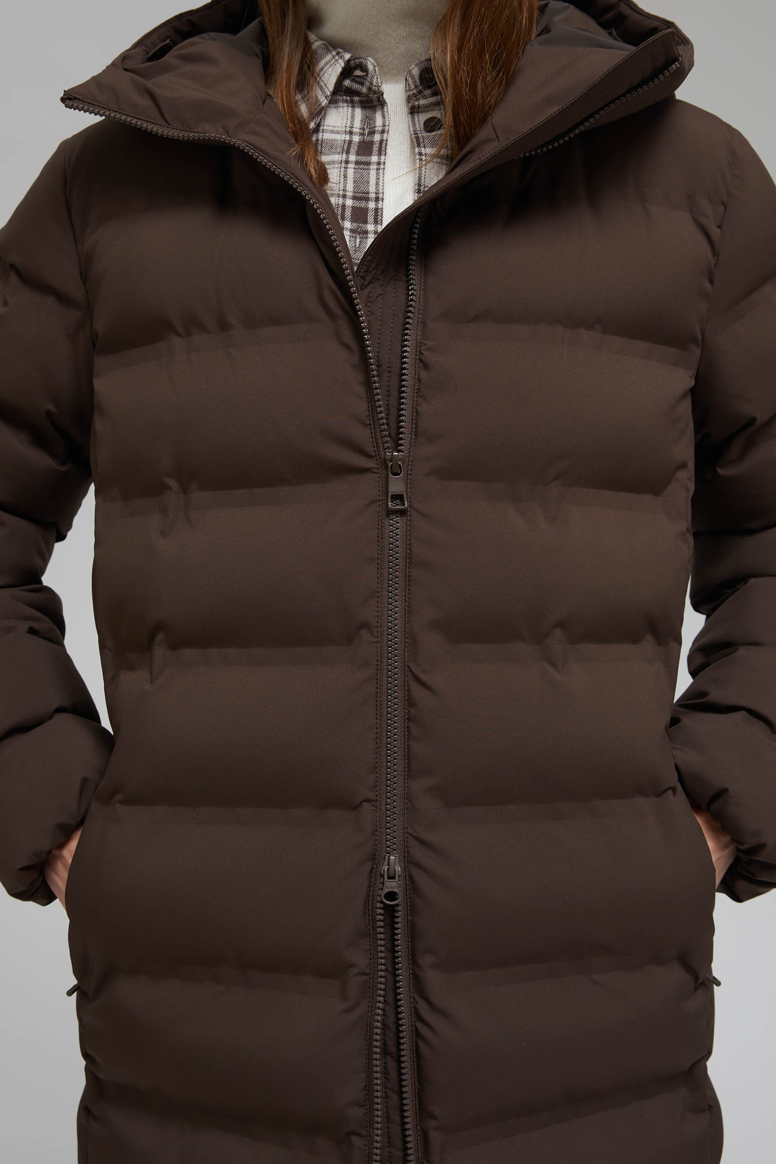 Длинный пуховик с капюшоном