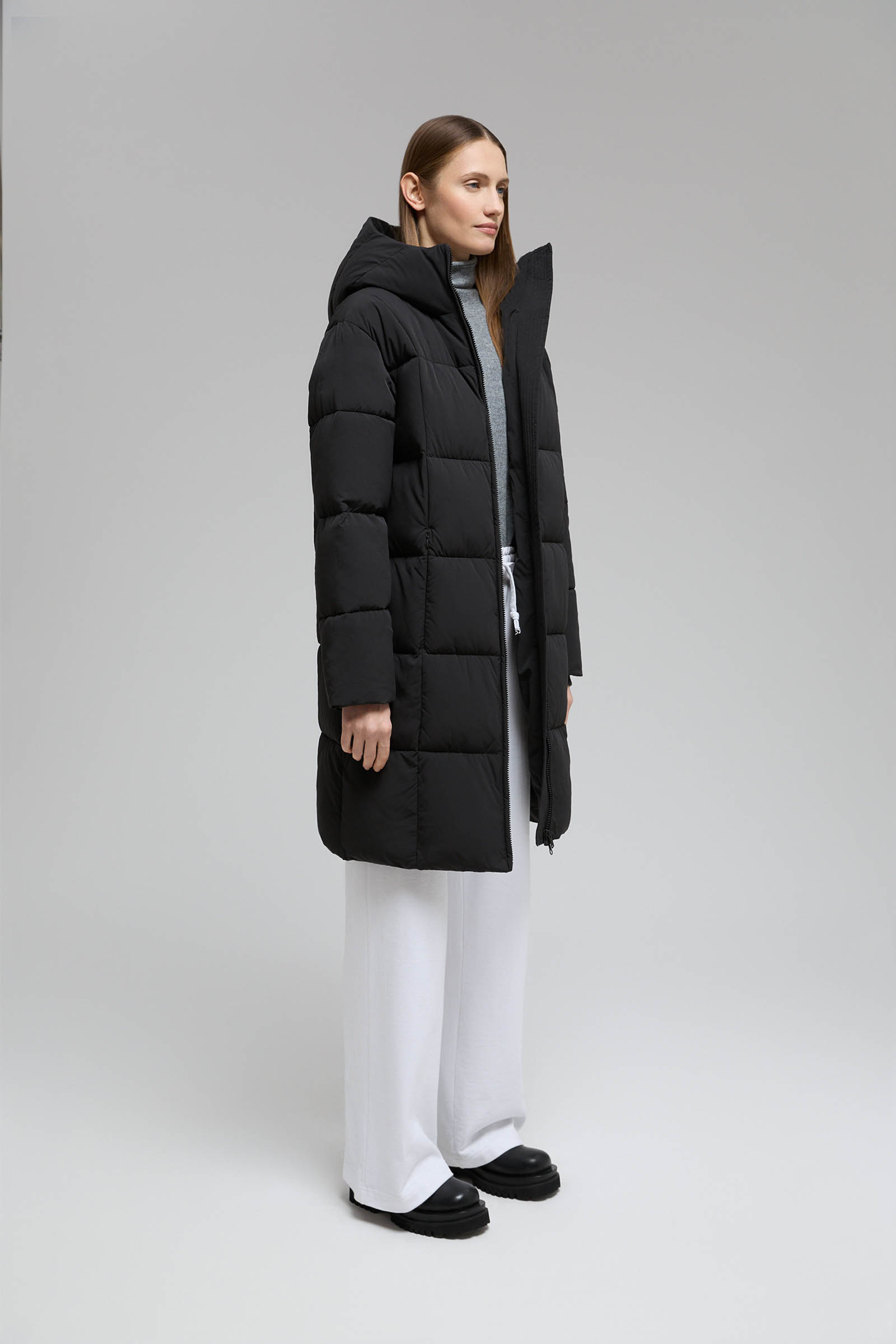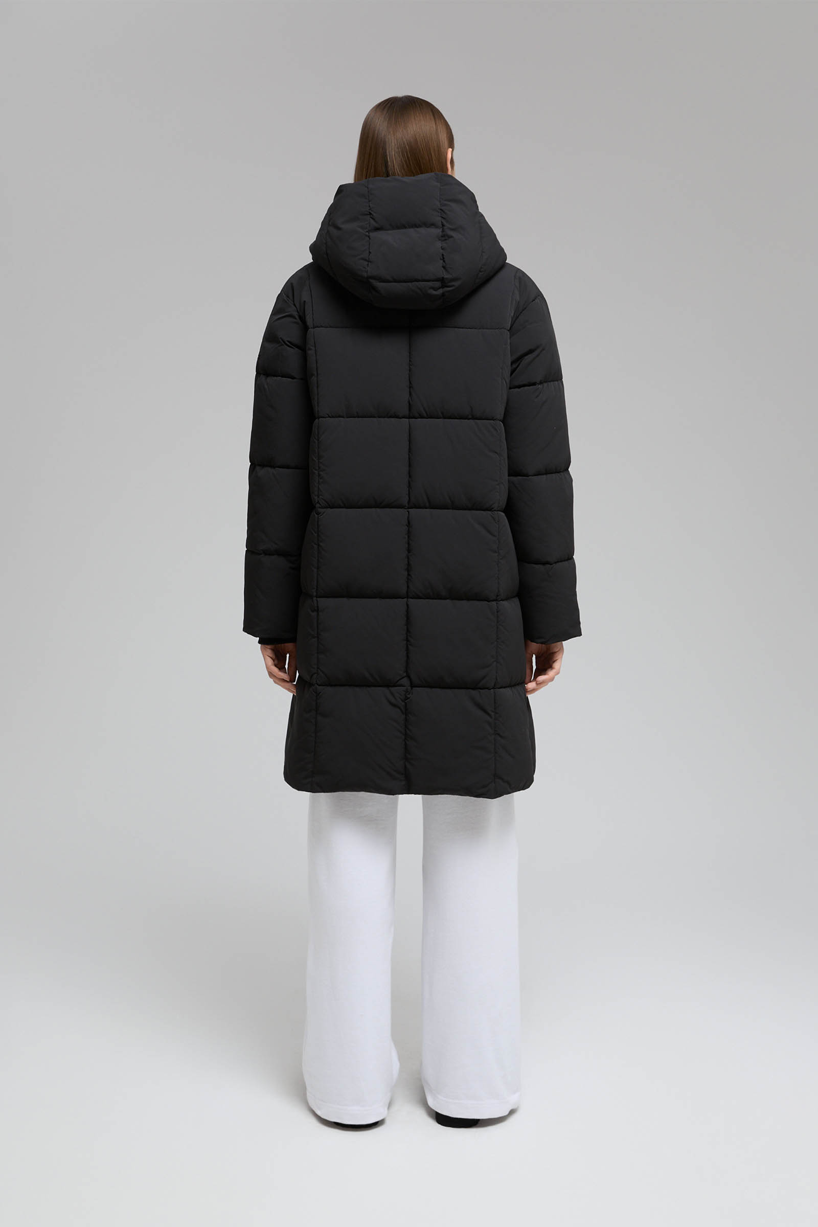 Утепленное стеганое пальто с капюшоном