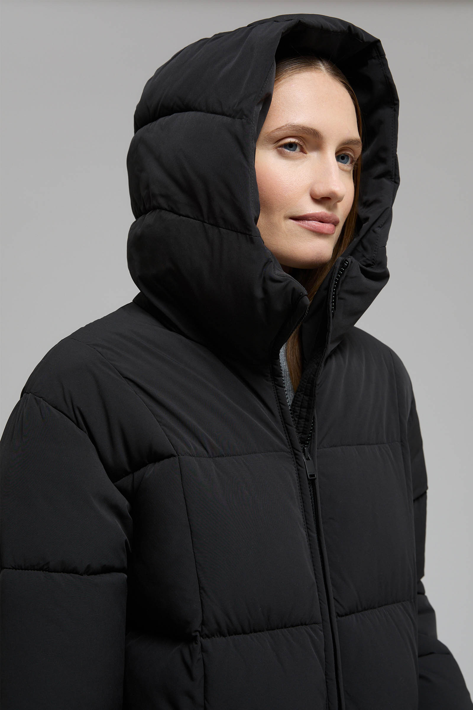 Длинный пуховик с капюшоном