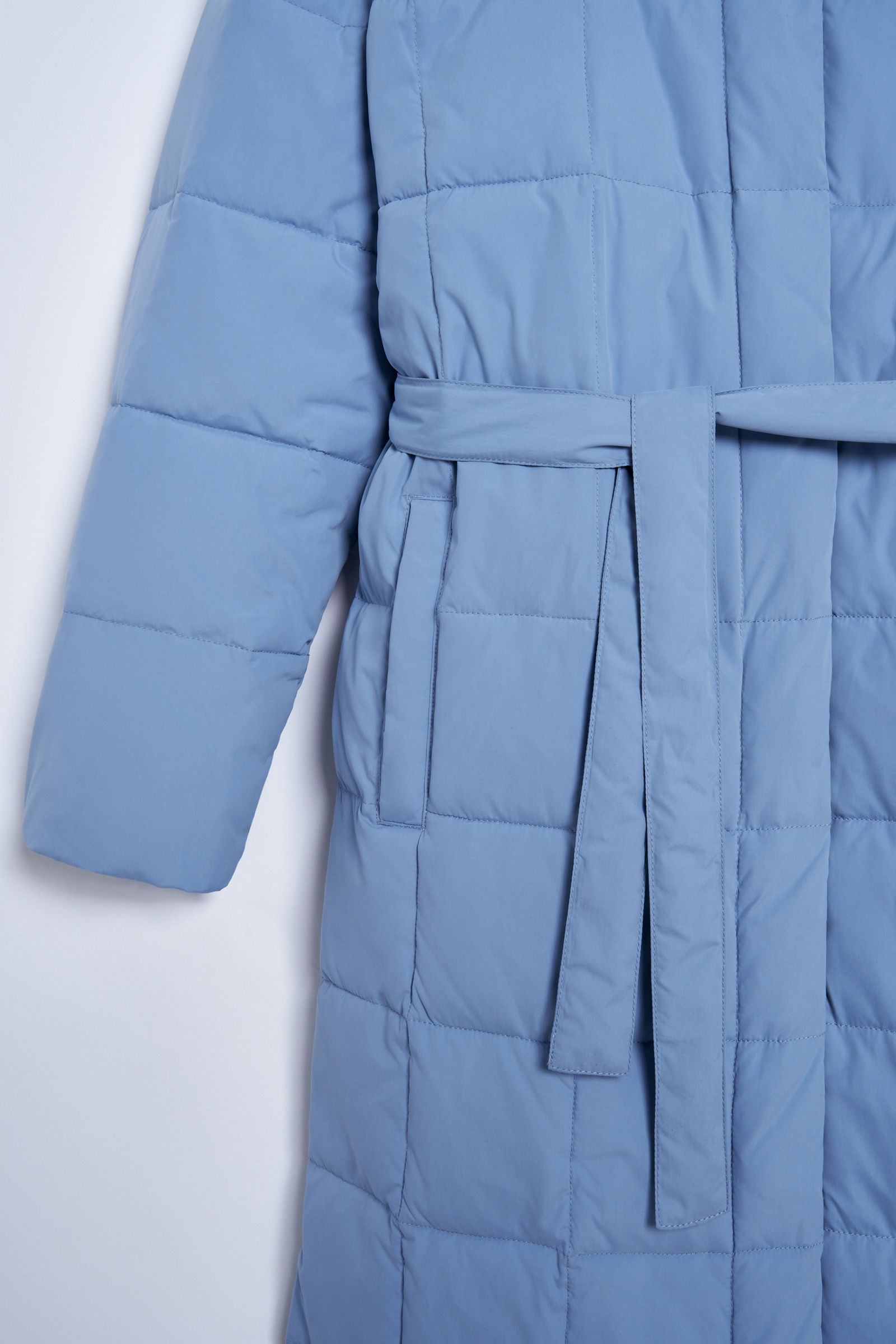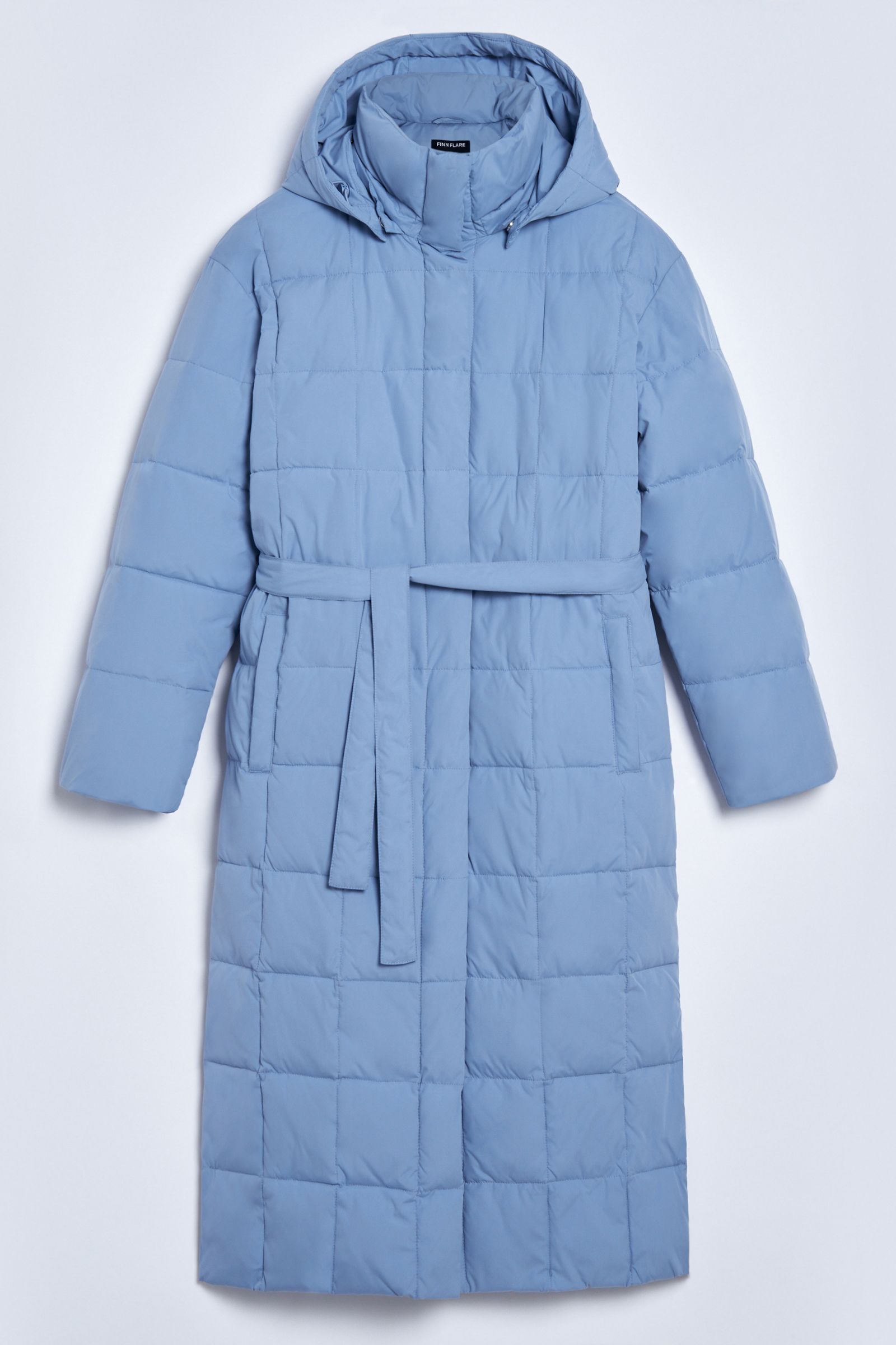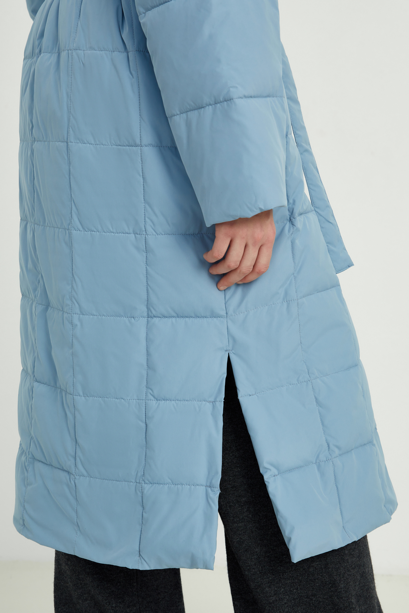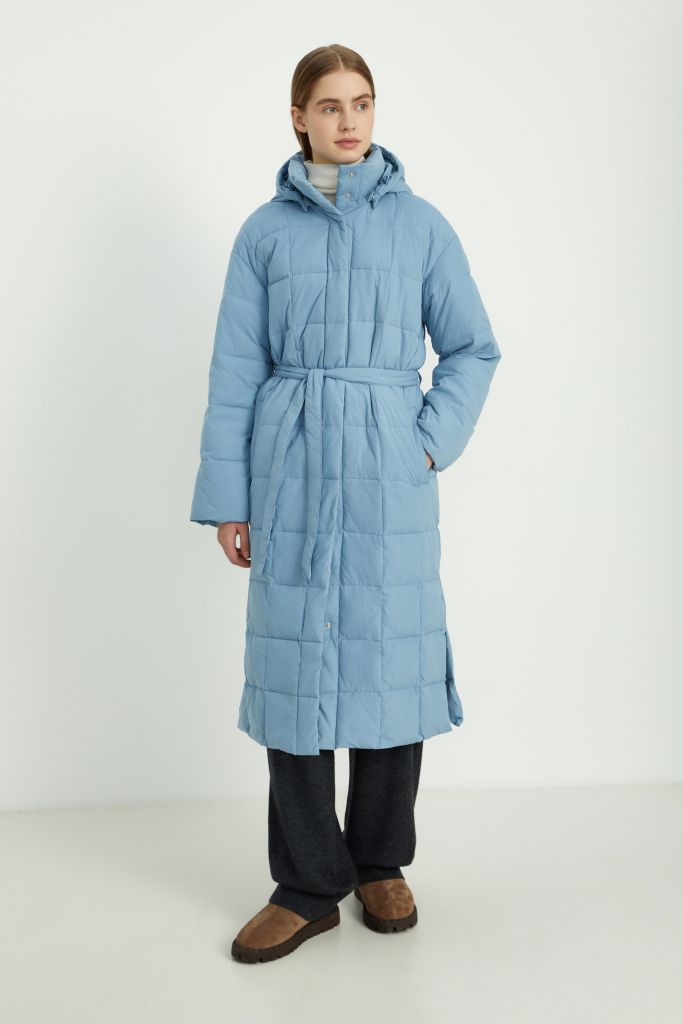 Утепленное стеганое пальто с капюшоном