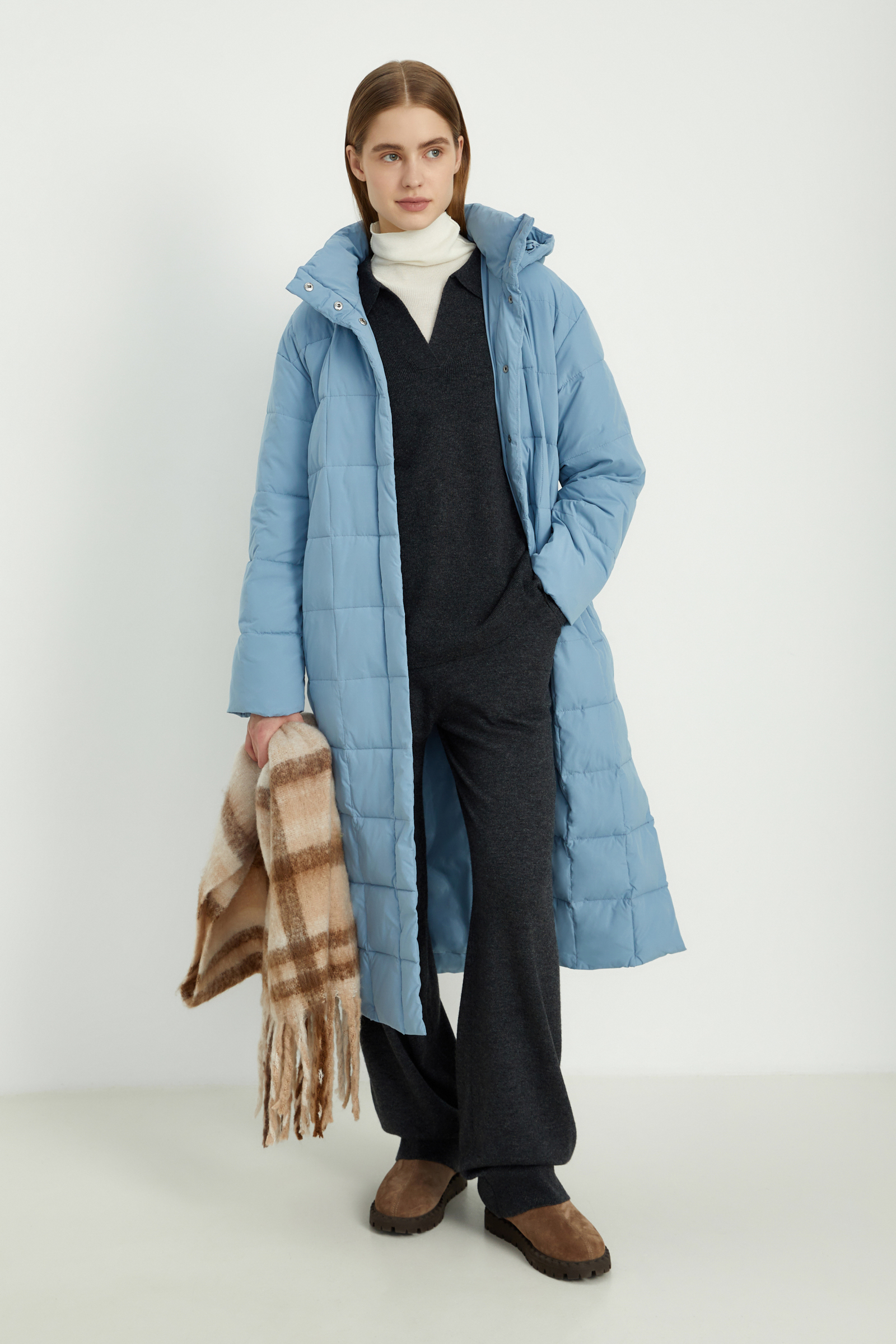 Утепленное пальто прямого кроя