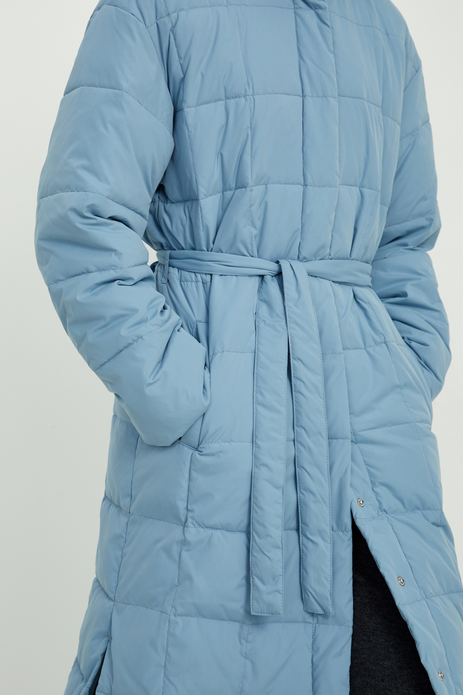 Утепленное пальто прямого кроя с карманами