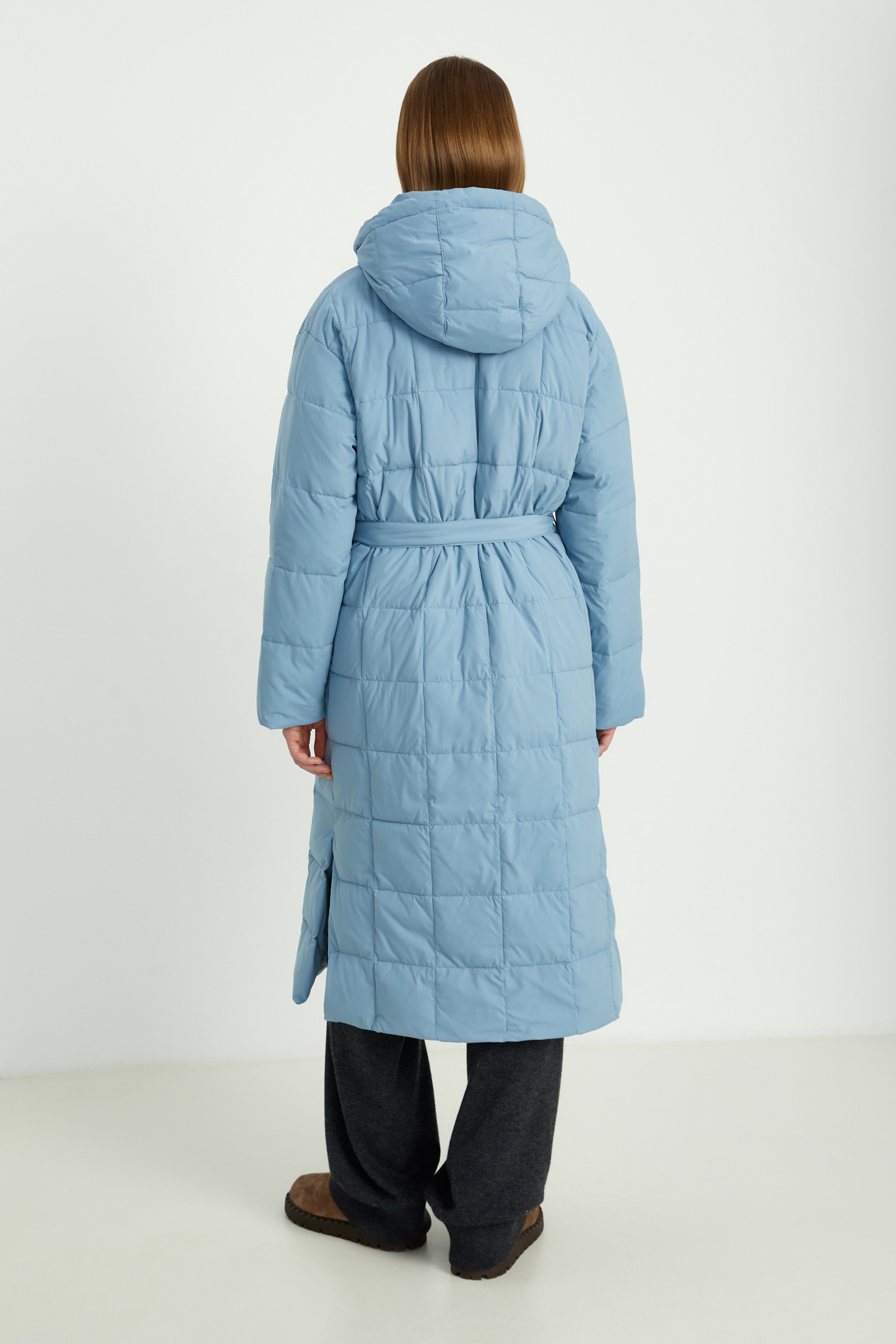 Стеганое утепленное пальто с капюшоном