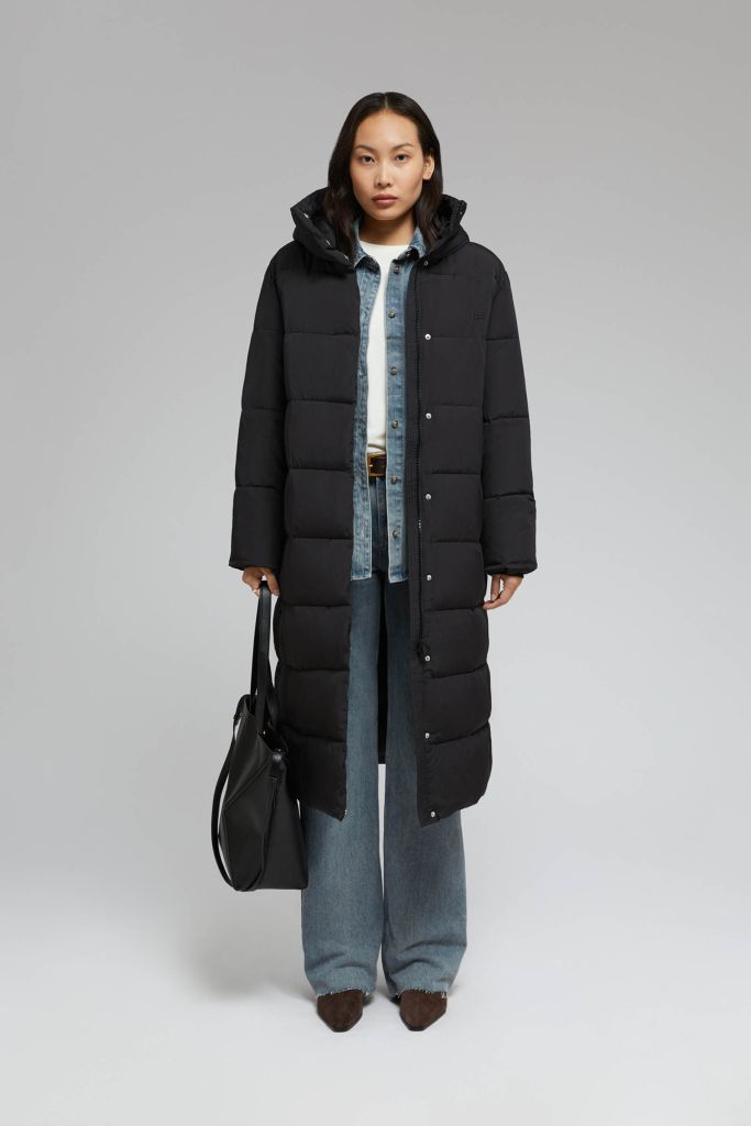 Утепленное стеганое пальто с капюшоном