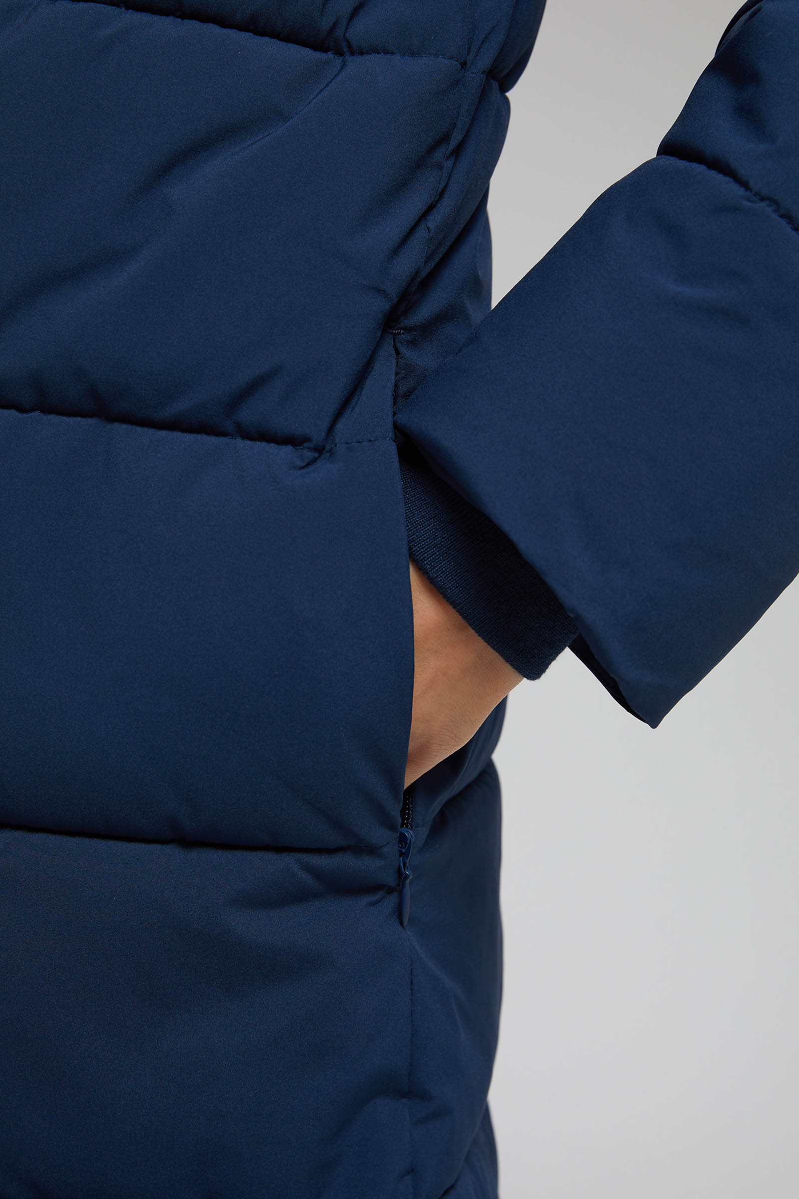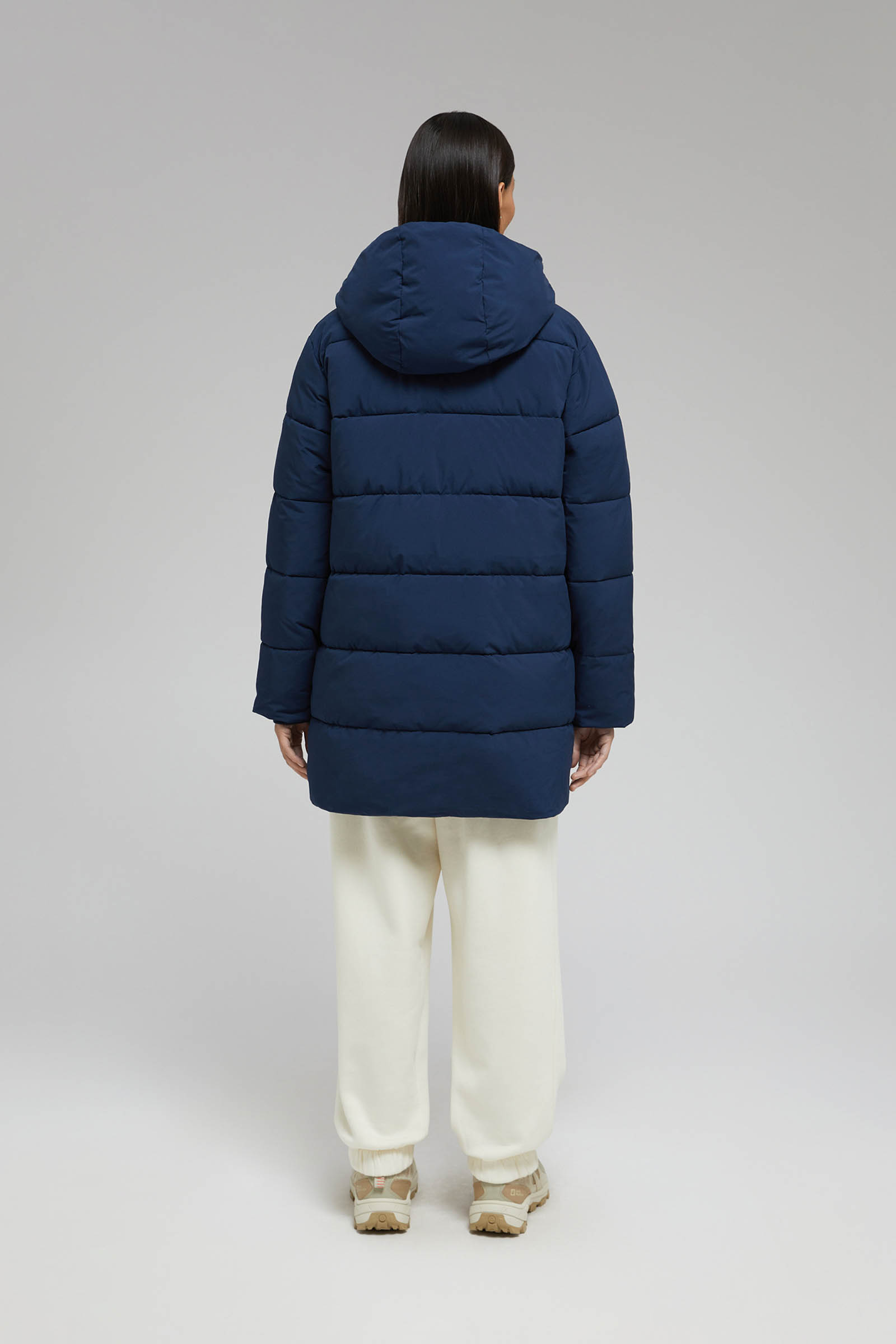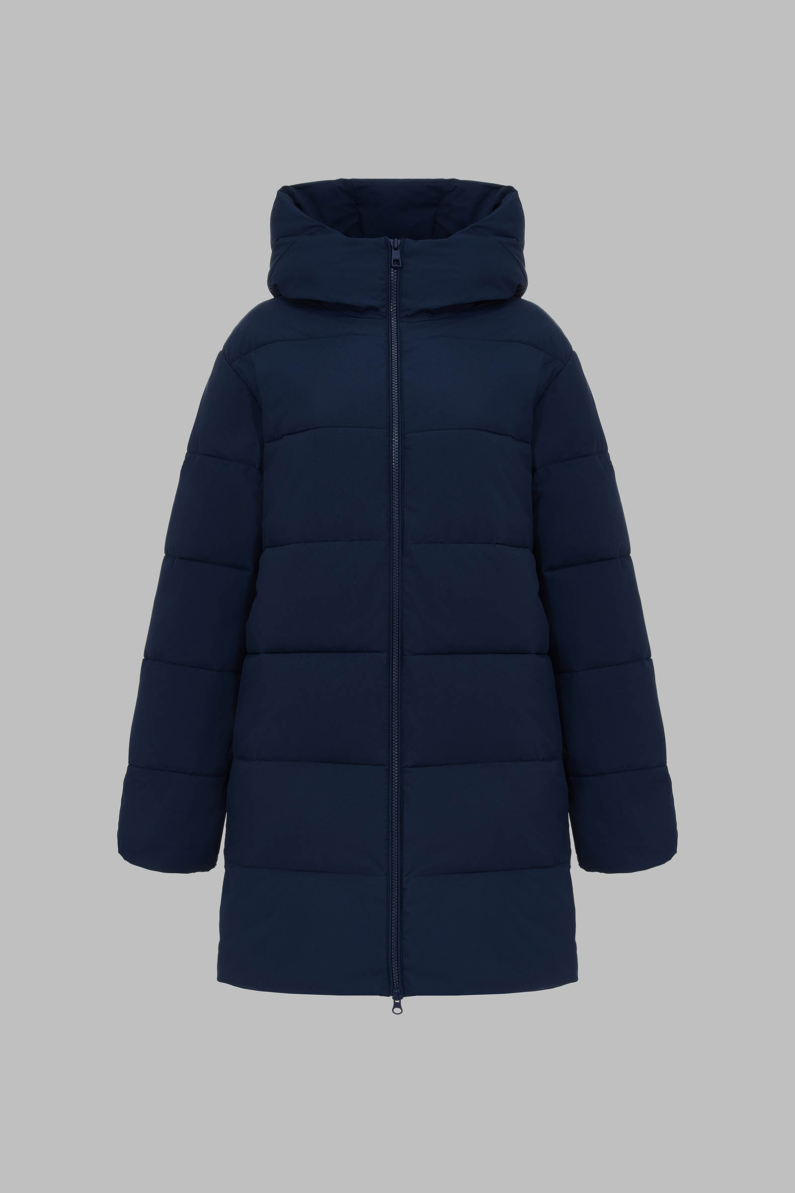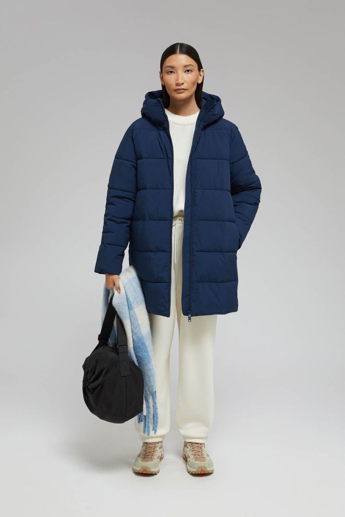 Утепленное стеганое пальто с капюшоном