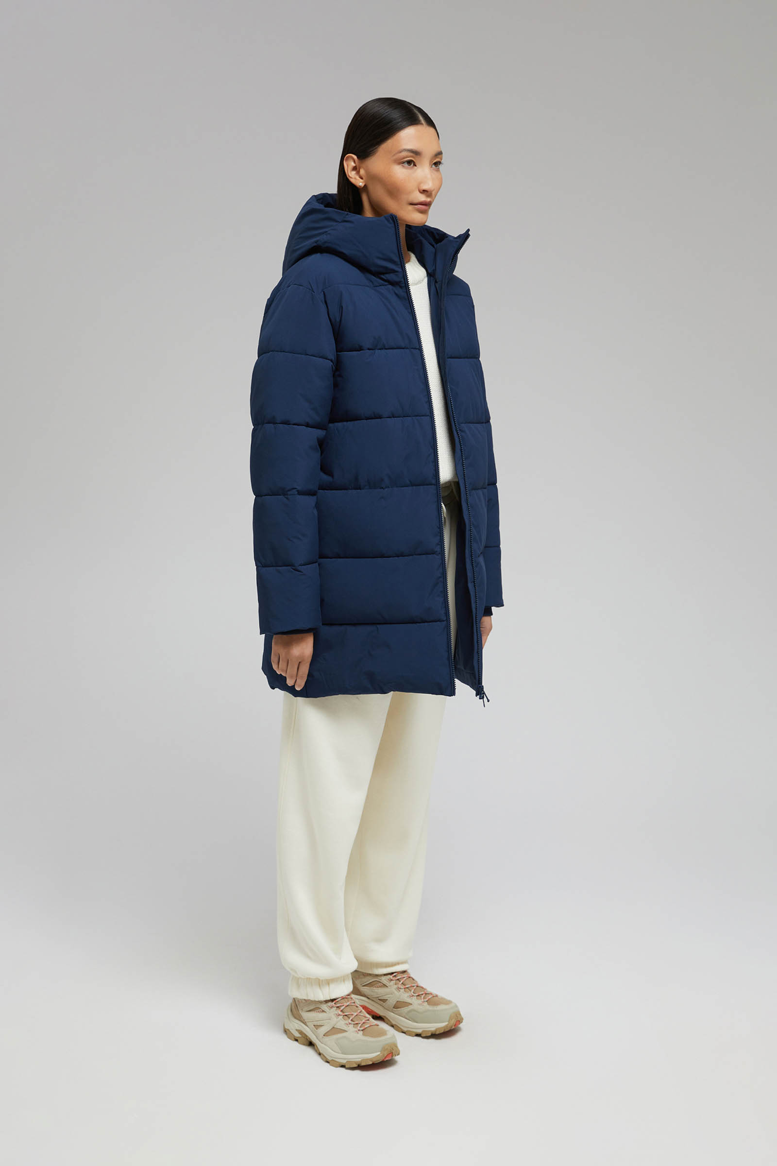 Утепленное пальто с капюшоном
