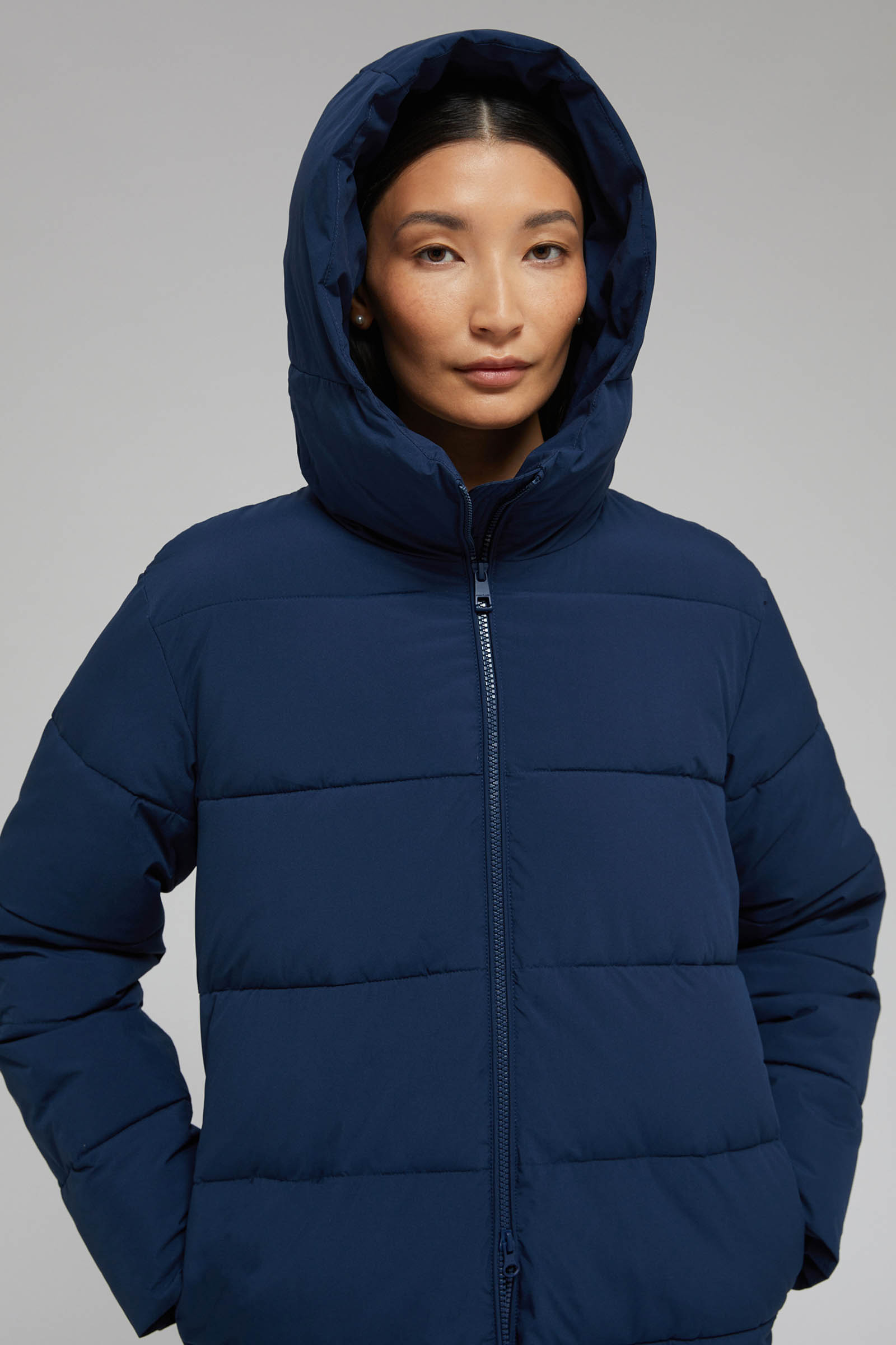 Утепленное полупальто с капюшоном