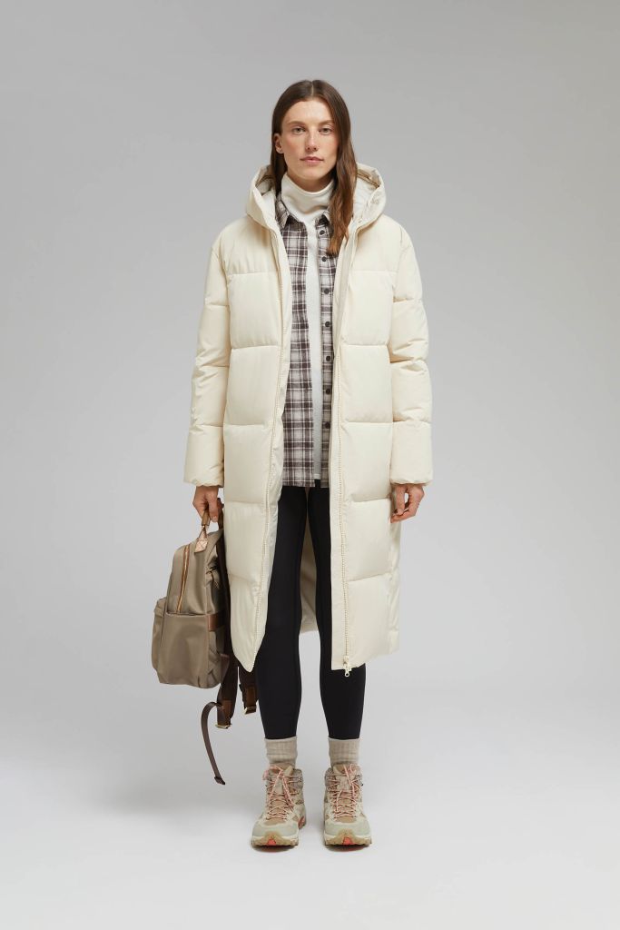 Утепленное стеганое пальто с капюшоном