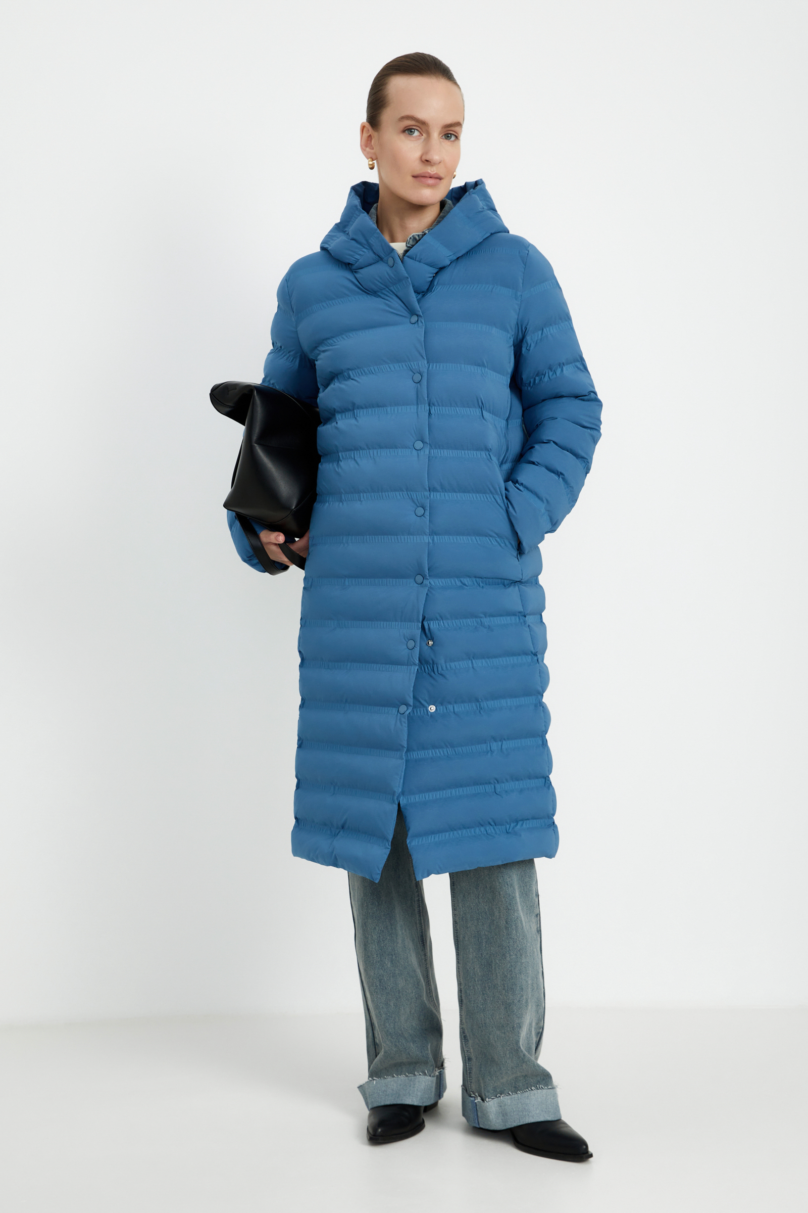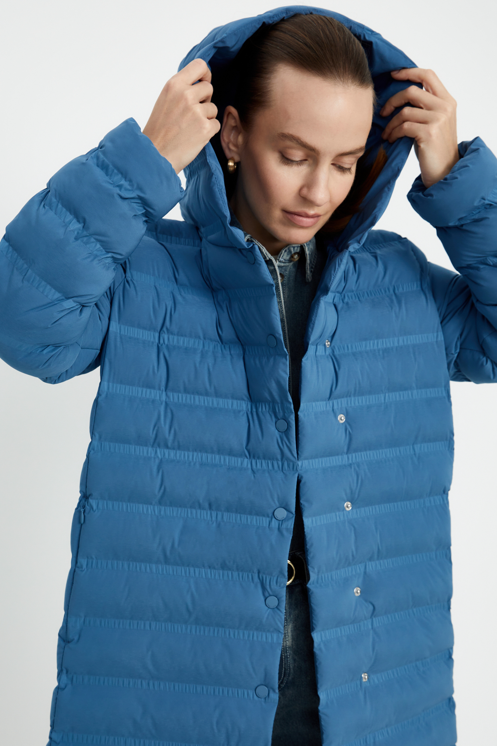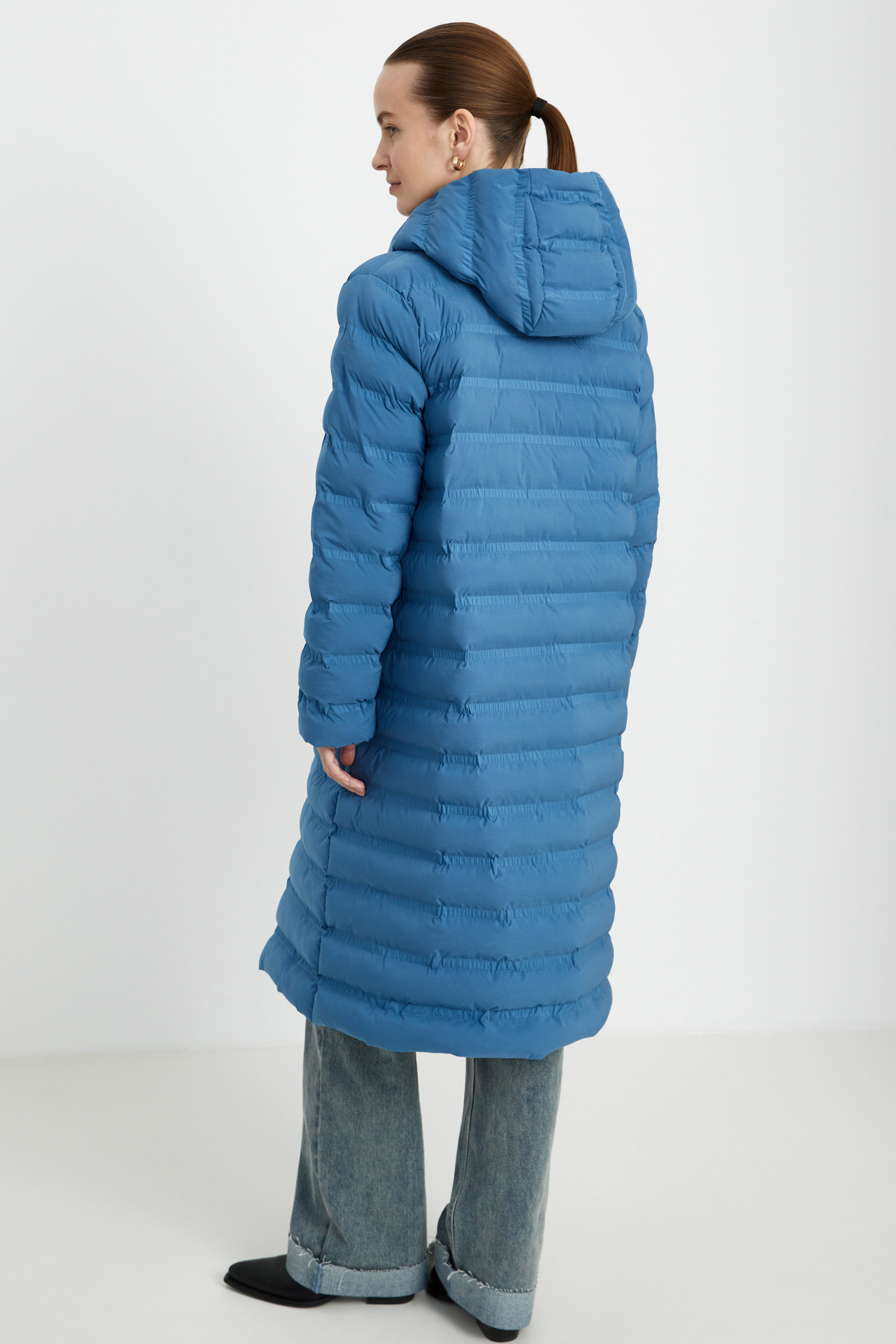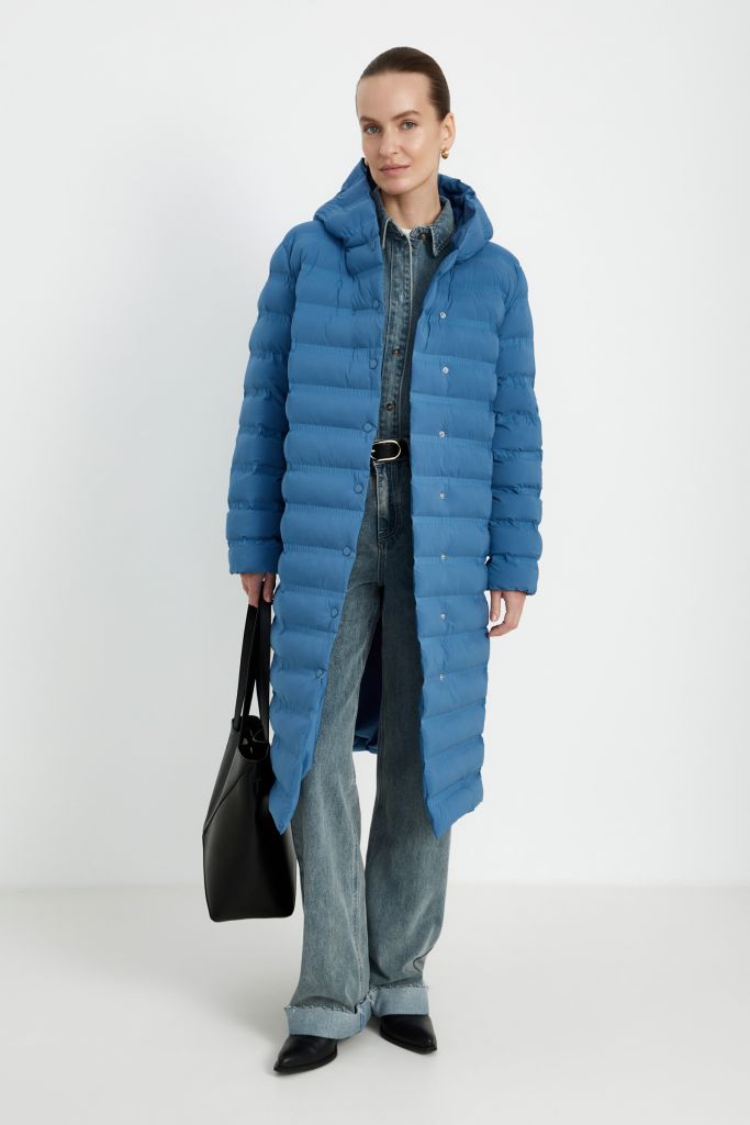 Утепленное стеганое пальто с капюшоном