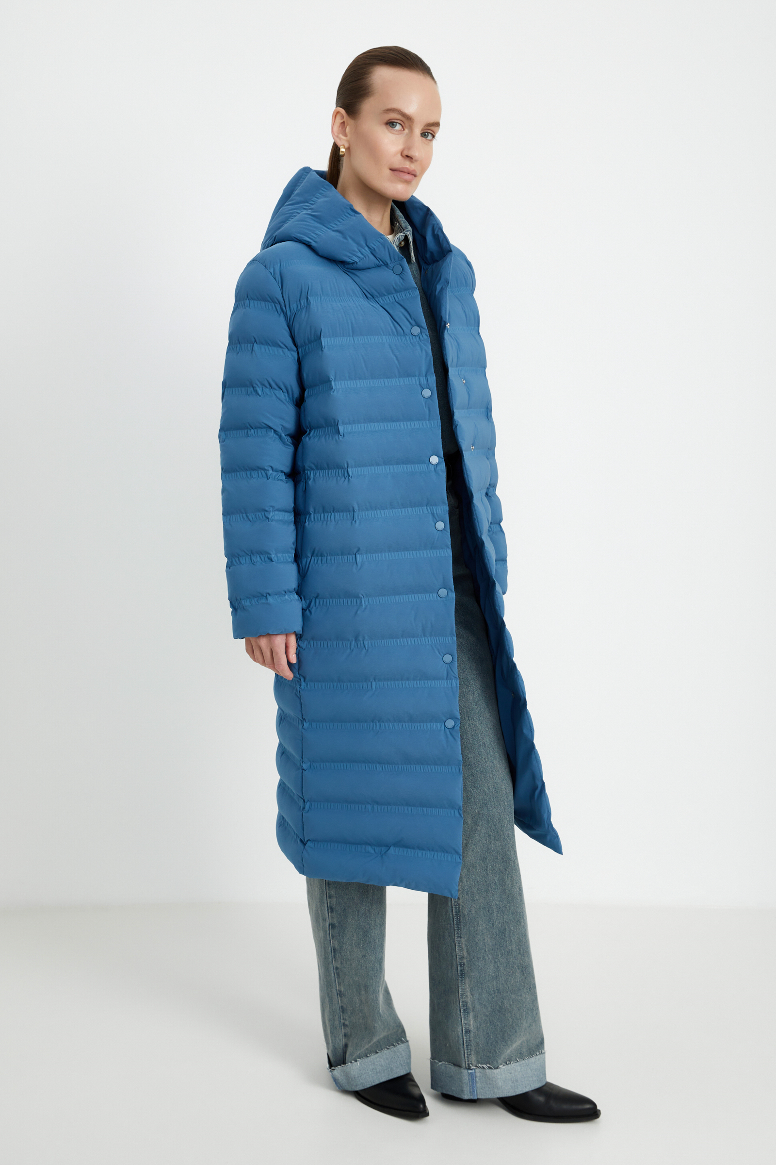 Утепленное пальто А-силуэта с капюшоном