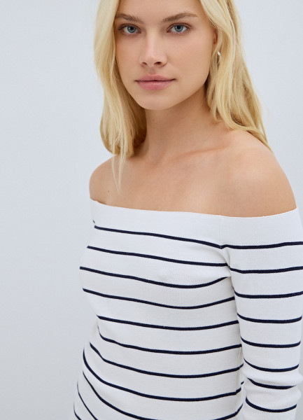 Джемпер в рубчик с воротником-поло, Фиолетовый
