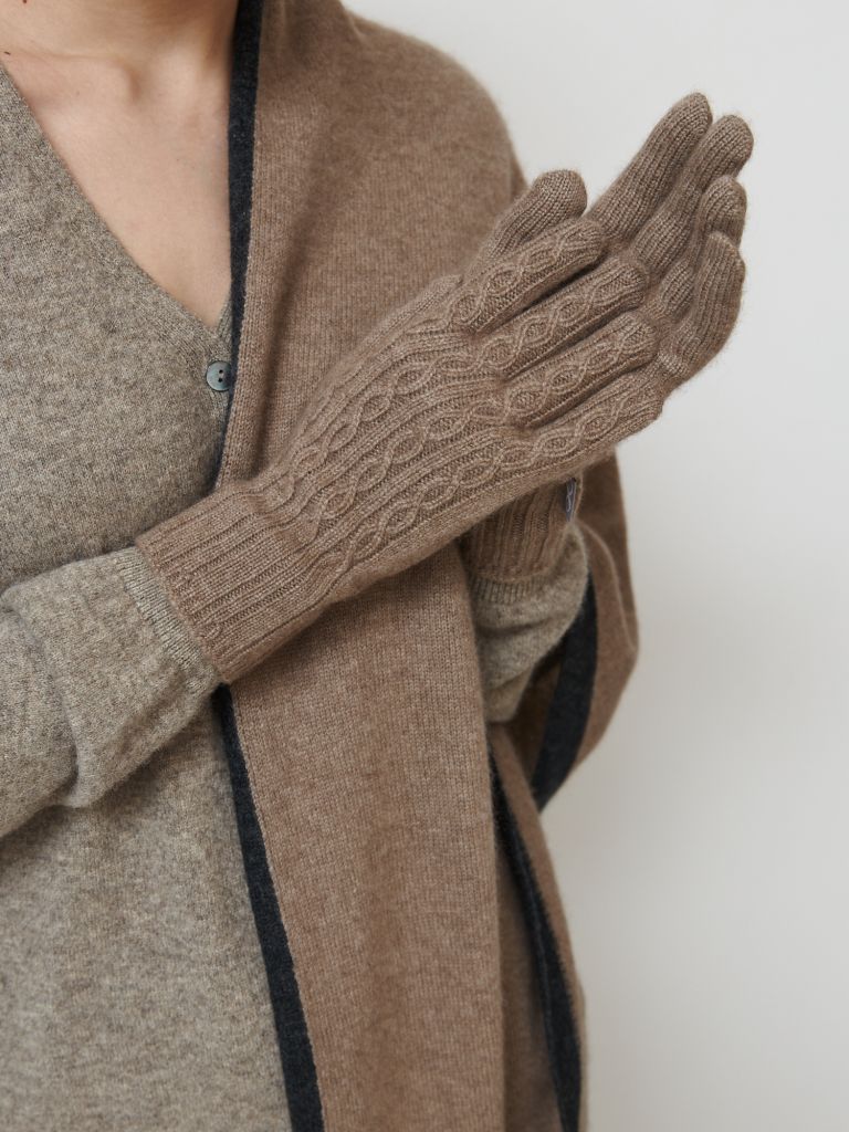 Изготовленные из 100% кашемира, перчатки отличаются особой мягкостью и теплом. Фактурный узор придаёт изделию изысканный вид, делая их не только практичным, но и стильным аксессуаром. Цвет капучино, универсальный и благородный, гармонично впишется в любой гардероб, добавляя вашему образу нотку утончённости.