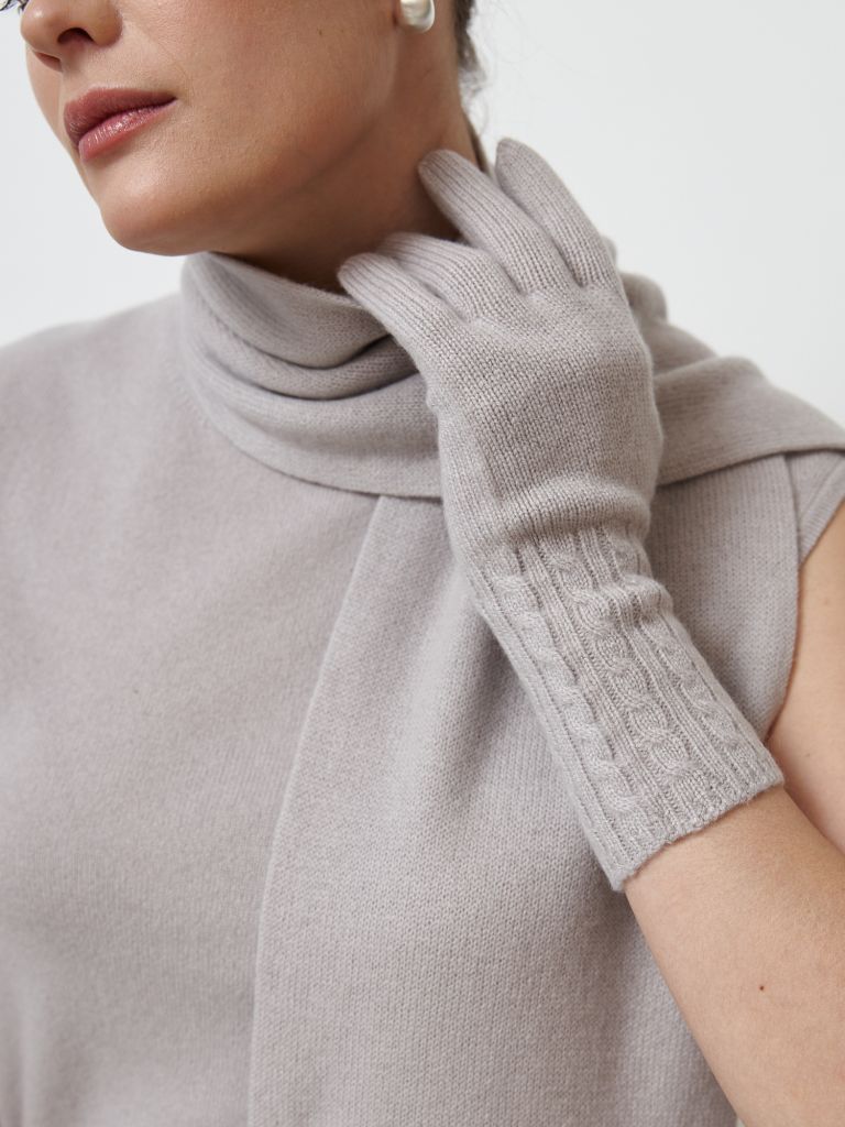 Перчатки выполнены из высококачественного 100% кашемира, который известен своей мягкостью и способностью сохранять тепло. Лунно-серый оттенок — это воплощение сдержанной элегантности, он легко вписывается в любой образ, добавляя ему нотку изысканности.