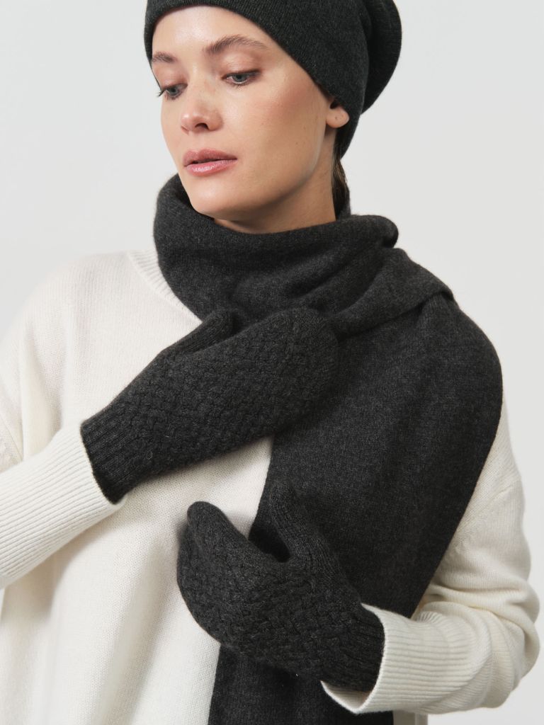 Кашемировые варежки графитового цвета — идеальный аксессуар для холодных дней. Они изготовлены из мягкого и теплого кашемира, который обеспечивает комфорт и защиту от ветра и мороза. Элегантный графитовый цвет легко сочетается с любой зимней одеждой, добавляя образу стиль и изысканность. Варежки имеют аккуратный крой и прочные швы, что гарантирует долговечность изделия. Это отличный выбор для тех, кто ценит комфорт и качество в зимних аксессуарах.