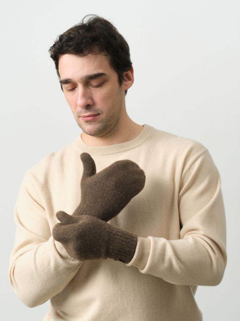Мужские варежки из пуха яка в классическом коричневом цвете. Обладают исключительной мягкостью, теплотой и комфортом. Натуральный материал обеспечивает высокую терморегуляцию и долговечность. Идеальный выбор для защиты рук в холодное время года.