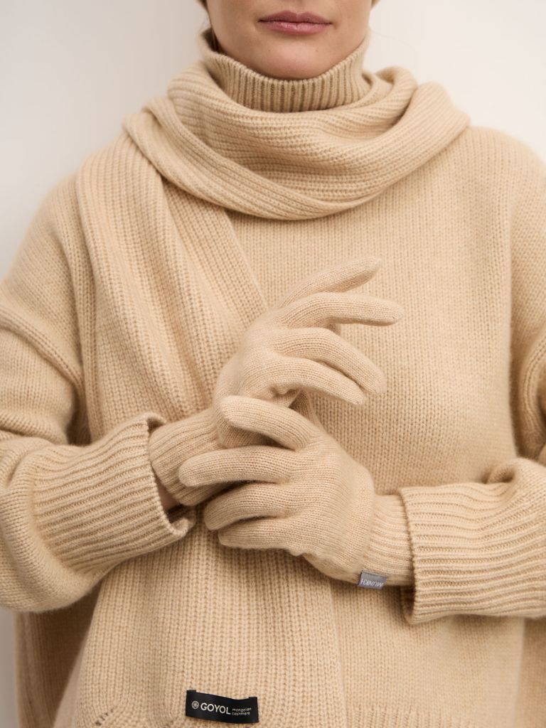 Классические перчатки из 100% монгольского кашемира в мягком бежевом оттенке — это воплощение уюта, тепла и элегантности. Они идеально подойдут для прохладного сезона, обеспечивая комфорт и изысканный вид.Детали и дизайнПерчатки выполнены из тонкого, но плотного кашемирового трикотажа. Эластичные манжеты обеспечивают удобную посадку и защиту от холода. Мягкая текстура приятна к коже и не вызывает раздражения. Бежевый оттенок придаёт образу естественную мягкость и гармонию, подчёркивая природную красоту материала.Как и с чем носитьС пальто, тренчем или дублёнкой — для классического городского образа.С кашемировым шарфом и шапкой в тон — уютный комплект на каждый день.С пуховиком и сапогами — для повседневного комфорта и тепла.Бежевый цвет универсален и легко сочетается с кремовым, серым, графитовым и шоколадным оттенками.Перчатки из кашемира станут стильным дополнением вашего гардероба, добавляя образу утончённость и мягкость. Они подойдут как для повседневного ношения, так и для особых случаев.УходРучная стирка в холодной воде или профессиональная химчистка.Сушить горизонтально, вдали от источников тепла и прямых солнечных лучей.Не выкручивать, хранить в сложенном виде.Перчатки из 100% кашемира в бежевом цвете — это классика, которая дарит тепло, комфорт и безупречный стиль каждый день.