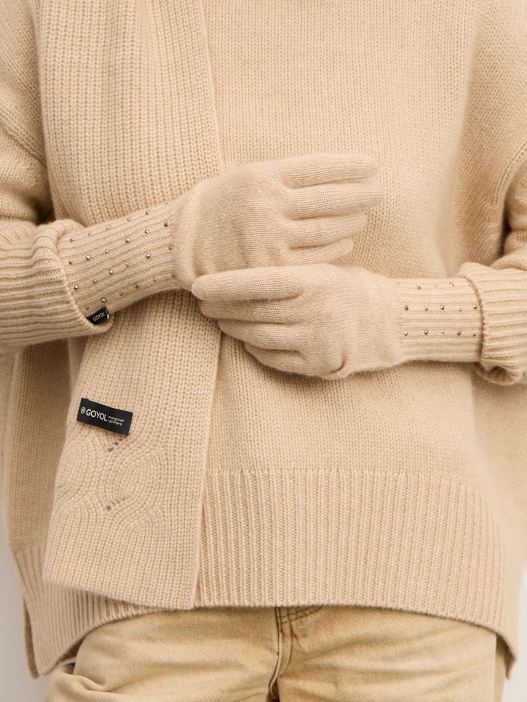 Изысканные перчатки из 100% монгольского кашемира в мягком бежевом оттенке — это сочетание утончённого стиля, тепла и комфорта. Декор из мелких страз придаёт аксессуару лёгкое сияние и делает его акцентом любого зимнего образа.Детали и дизайнПерчатки выполнены из мягкого кашемирового трикотажа, который бережно согревает, не раздражая кожу. Эластичные манжеты обеспечивают удобную посадку, а деликатное украшение мелкими стразами вдоль запястья придаёт модели женственность и изысканный блеск. Натуральная пряжа обеспечивает лёгкость и долговечность изделия.Как и с чем носитьС пальто или дублёнкой — для элегантного городского образа.С кашемировым шарфом и шапкой в тон — для создания утончённого комплекта.С пуховиком и сапогами — практичный и стильный вариант на каждый день.Стразы добавляют едва заметное свечение, которое красиво играет при дневном и вечернем свете.Бежевый оттенок легко сочетается с молочными, карамельными и графитовыми тонами, создавая мягкий и гармоничный образ.УходРучная стирка в холодной воде или профессиональная химчистка.Сушить горизонтально, вдали от источников тепла и прямых солнечных лучей.Не выкручивать, хранить в сложенном виде.Перчатки из кашемира со стразами — это не просто защита от холода, а стильный аксессуар, который добавит блеска и элегантности в зимние дни.