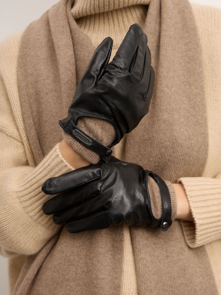 Эти перчатки — воплощение утончённого тепла и практичной роскоши. Верх выполнен из мягкой натуральной кожи премиального качества — она эластична и со временем становится только приятнее на ощупь. Внутри — подкладка из 100% кашемира, которая дарит нежное тепло даже в самые холодные дни.МатериалыСнаружи — натуральная кожаВнутри — 100% кашемирОсобенностиМягкая кожа с естественным блескомТёплая кашемировая подкладкаУдобная застёжка на запястье с декоративным элементомКлассический чёрный цветПодходят на размер 7,5–8Идеальный выбор для тех, кто ценит комфорт, качество и лаконичный стиль.