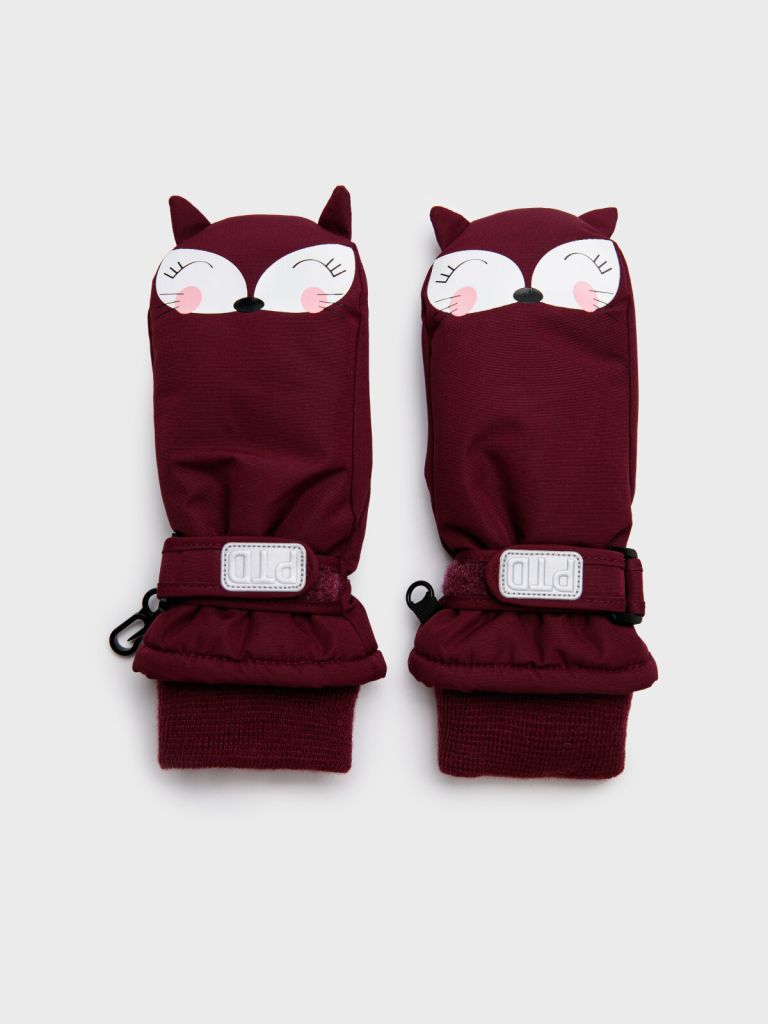 Варежки детские для девочки. Утепленные варежки из мембранной ткани 5000х5000 - необходимый аксессуар для холодного времени года (осень, зима). Специальный протектор на ладонной части усиливает износостойкость изделия. Варежки имеют флисовую подкладку и тесьму с карабинами, благодаря которой можно крепить варежки друг к другу. Удобная застежка с регулировкой ширины запястья.