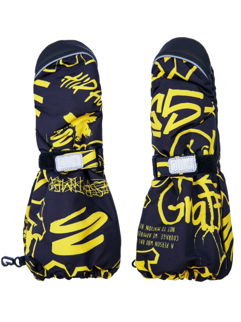 Зимние варежки-краги с мембраной. Утеплитель – синтепон. Мягкая ладошка из влагостойкого полиуретана. Регулируемая застёжка с липучкой по запястью. Застежка для скрепления пары между собой. Светоотражающие элементы.